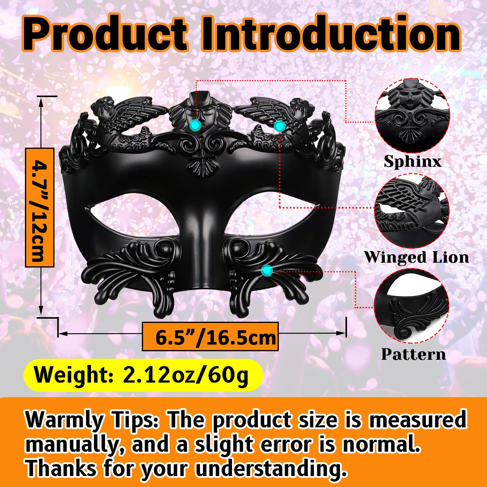 Exquisite Designs: We offer a variety of designs including electroplating black plastic masks for women, ancient Roman Greek mythological style masks for men, and retro classic Venetian styles with glitter powder