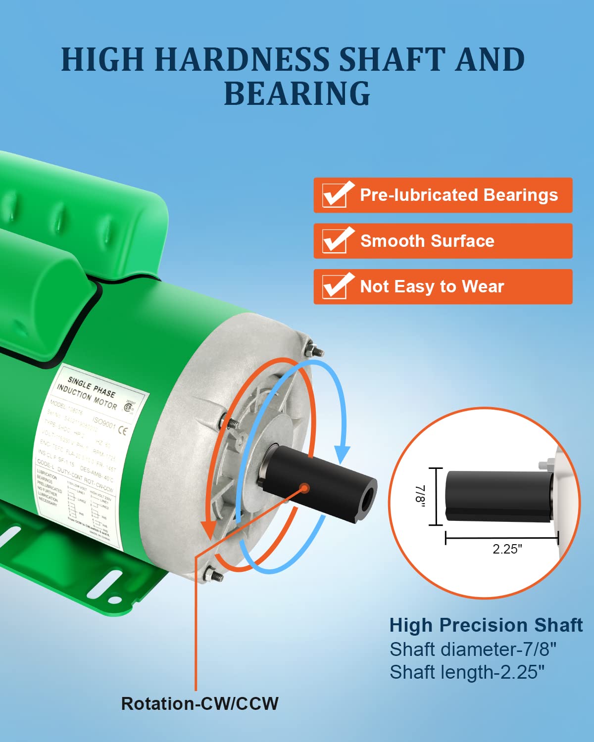 Housing Material: Rolled steel shell. Adopt S1 continuous working system, safe and durable, long service life, Shaft diameter - 7/8,Shaft length - 2.25.