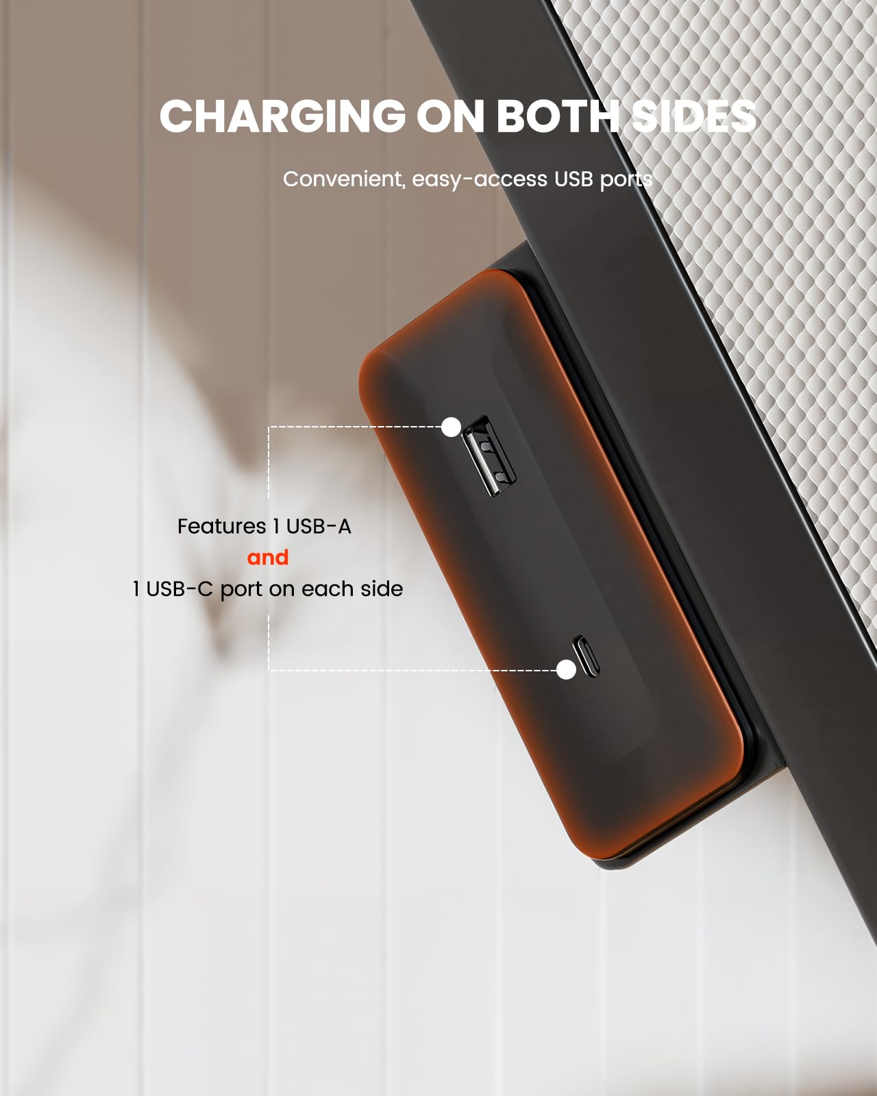 Convenient Charging Ports: This adjustable bed frame features a USB-A and USB-C charging port on each side, making it easy to keep your devices fully powered. Whether you're reading, working, or unwinding with your phone or tablet, you'll have power within reach.