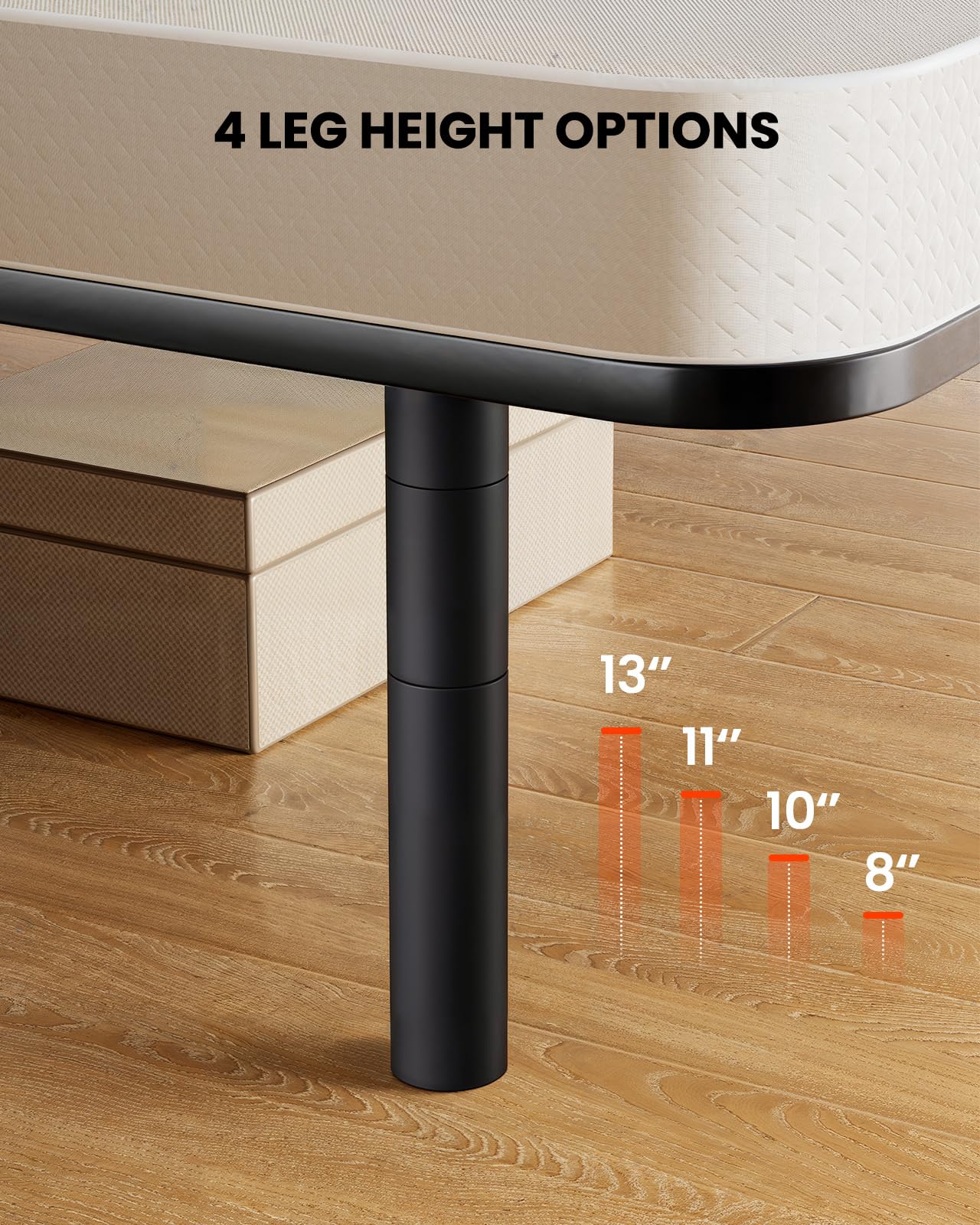 4 Leg Height Options: The adjustable twin XL bed frame includes three leg sections (2″, 3″, and 8″) that can be configured to create leg heights of 8″, 10″, 11″ and 13″ tall. Whether you need a lower level to get in and out of bed or want more storage space underneath, you can choose the ideal bed height for your space.