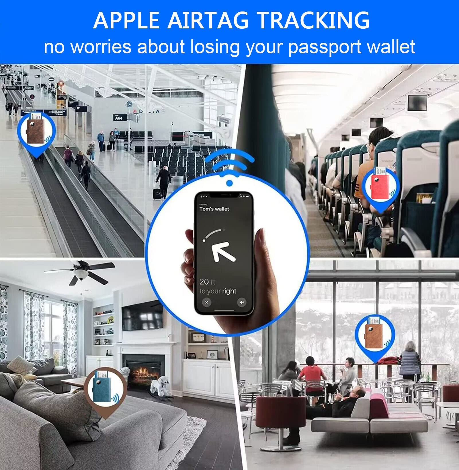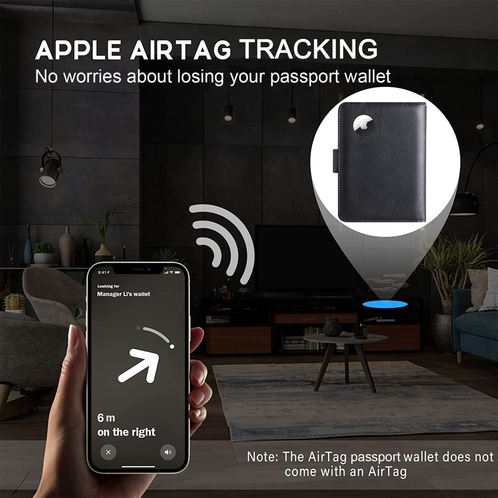 PASSPORT AND AIRTAG HOLDER COMBO - The built-in holder for Apple Air Tag combine passport wallet and AirTag ideally to make sure you never lose your passport wallet again. Misplaced or lost your passport wallet? Keep track of and see where you last had it alongside friends and devices in the Find My app. The AirTag passport wallet does not come with an Airtag.