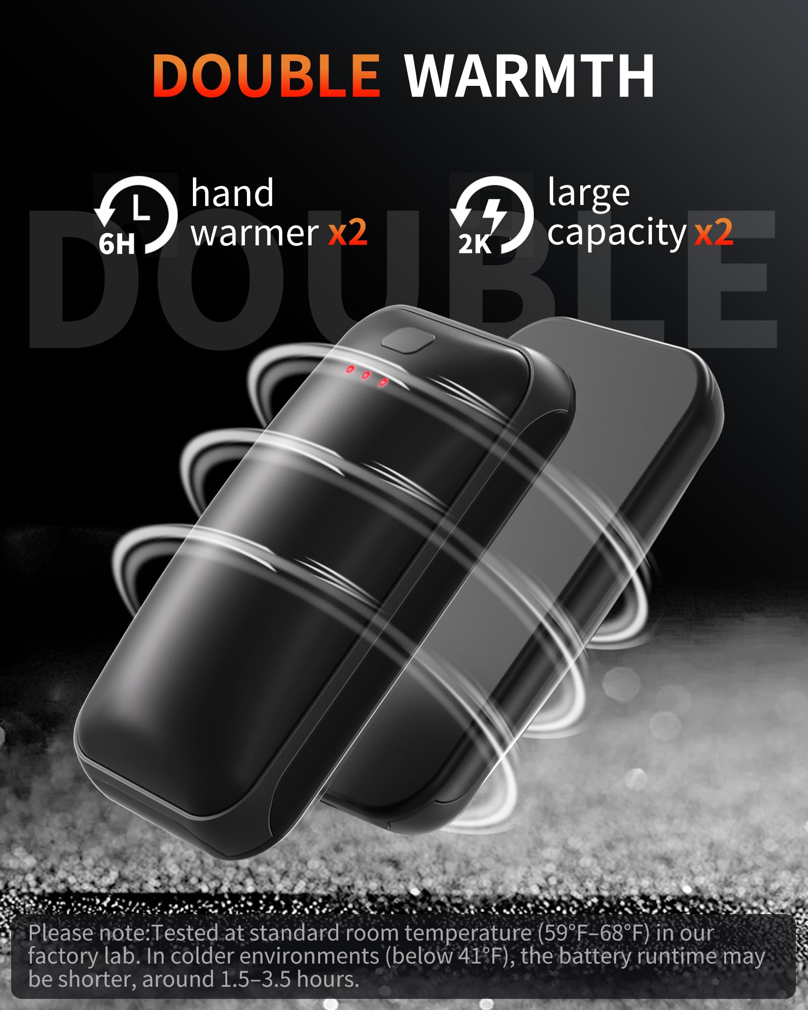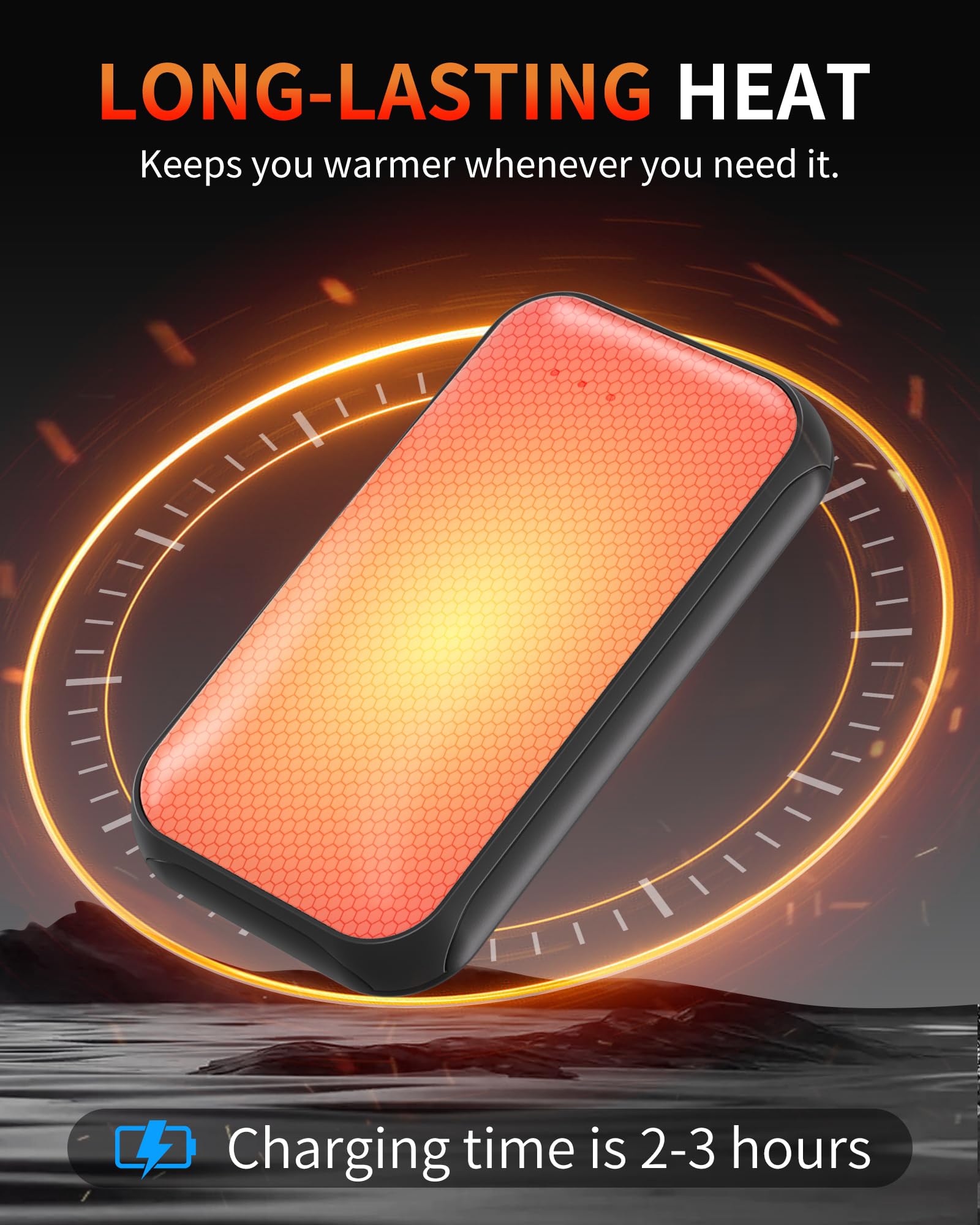 【All-Day Warmth & FAST Charging】 Equipped with premium chips and dual 2000 mAh batteries, our hand warmers offer long-lasting warmth while staying lightweight. The dual-ended charging cable ensures a quick charge in just 2 to 3 hours, so you’re always ready to stay warm.