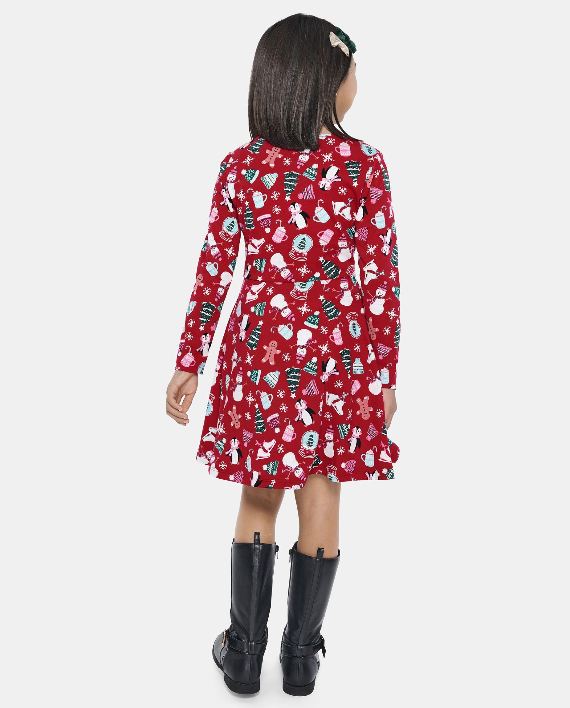 DESIGN β Features allover Christmas print, crew neck, long sleeves and above-the-knee length