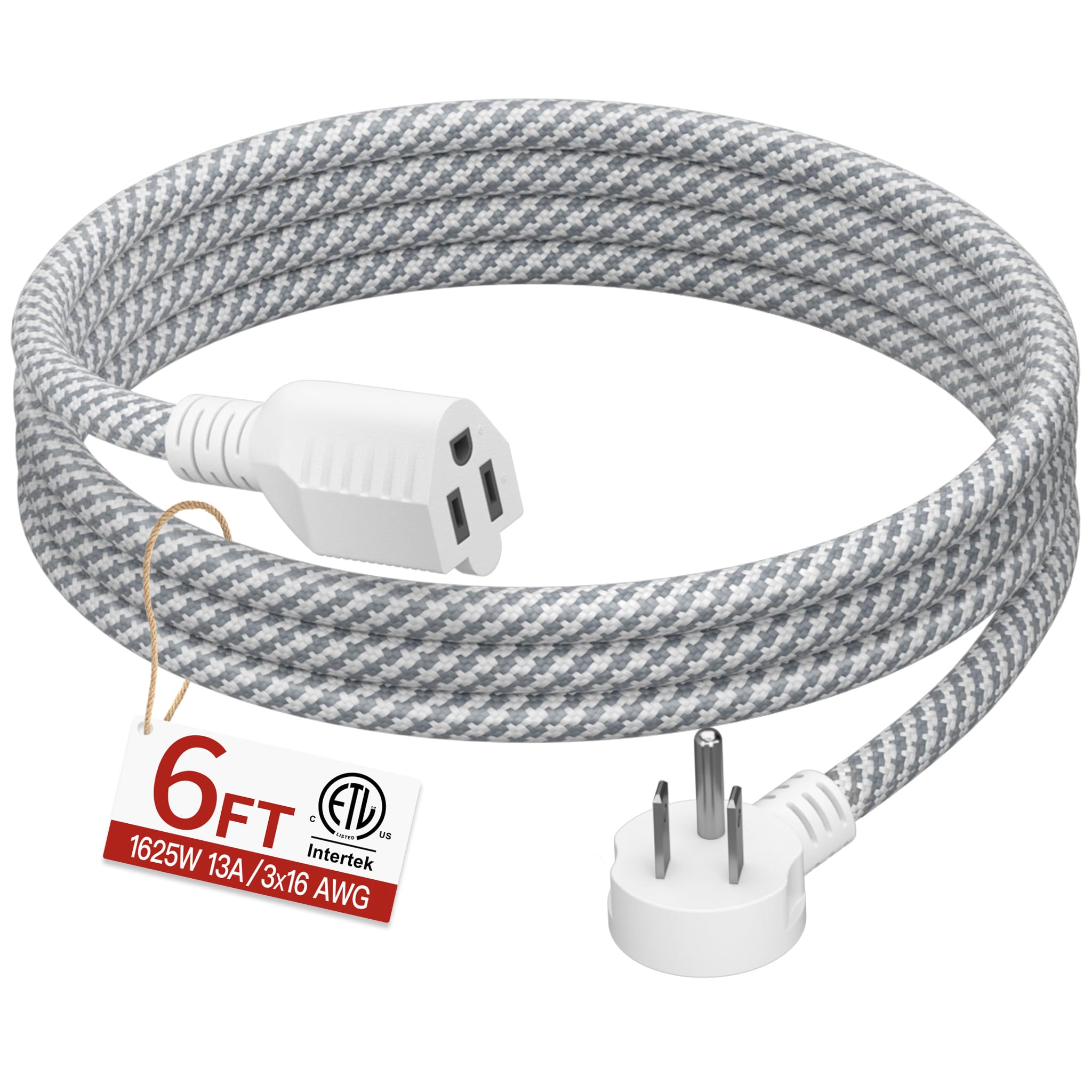 Flexible & Tangle Resistant: Braided flat plug 6ft extension cord Plug and socket are designed with long strain relief at the end; Braided flat plug extension cord 6ft pass 20,000 large-angle bends without breaking prolonging service life; Small extension cord provides flexible mobility for small appliances and sockets after use it can be easily stored to avoid clutter