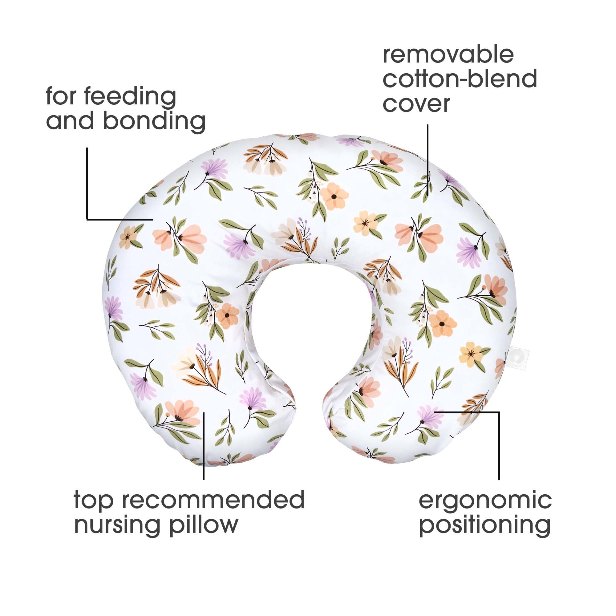 This Boppy nursing pillow provides ergonomic support for breastfeeding, bottle feeding, and bonding. The c-shaped design allows for multiple feeding stylesβcradle, cross cradle, football hold and bottle feeding. Aids positioning for a better latch and back relief. Machine washable for easy cleaning with removeable pillow cover for added ease. The average nursing mom spends over 35 hours per week breastfeeding. Get the tools for the job with the Boppy Original Support Nursing Pillow. The beltless design allows for an easy, one-handed placement with no fuss, and the Miracle Middle panel provides a seam-free connection with your body for a more comfortable fit for c-sections or stomach tenderness after birth. This award-winning Boppy nursing pillow is a registry must-have and a parent favorite. Small enough to easily fit in your rocking chair or glider, but big enough to give the support you need. Support for you and baby with hypoallergenic fiber fill and a removable cover to help keep your breastfeeding pillow cleaner longer. A variety of Boppy Nursing Pillow Covers to fit your style are sold separately, from cotton blends to organics, so you always have backup on laundry day. Designed for your baby's adult-supervised awake-time. This product is not for sleep. Thank you to the millions of parents who trust Boppy. Looking for extended sizes? Check out the Boppy Best Latch Support Nursing Pillow or the Boppy Anywhere Support Nursing Pillow for a perfect fit. This product should never be used for sleep. Our mission is to keep you feeling comfortable and confident with your decision to choose Boppy for high quality products, expert third party testing, and clear messaging. The AAP Safe Sleep Guidelines state that a baby should never be put to sleep with any pillow or plush product. Newborns should always be put to sleep on their back on a firm, flat surface free from loose blankets, pillows, stuffed toys, bumpers, and other soft items. Please always use products as...
