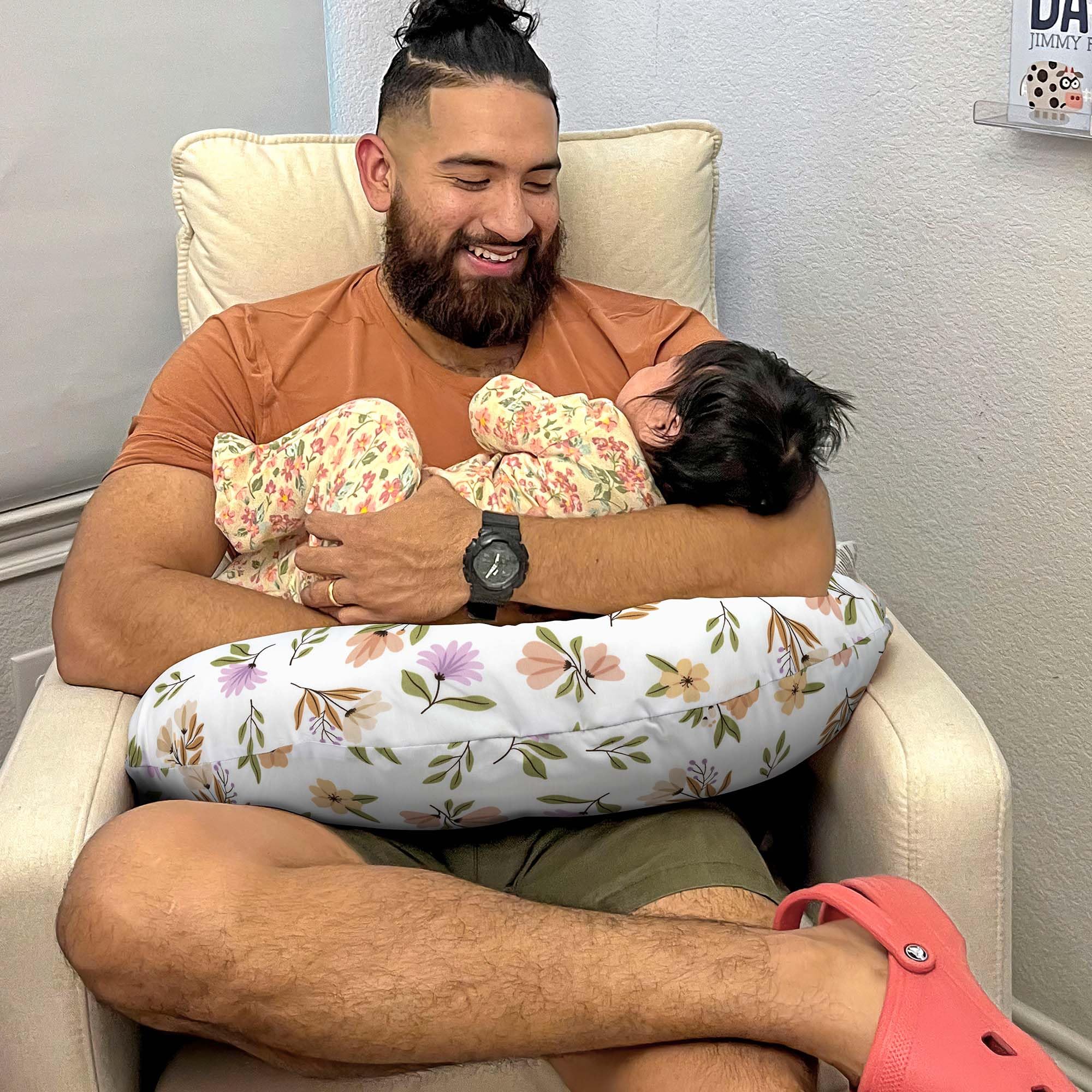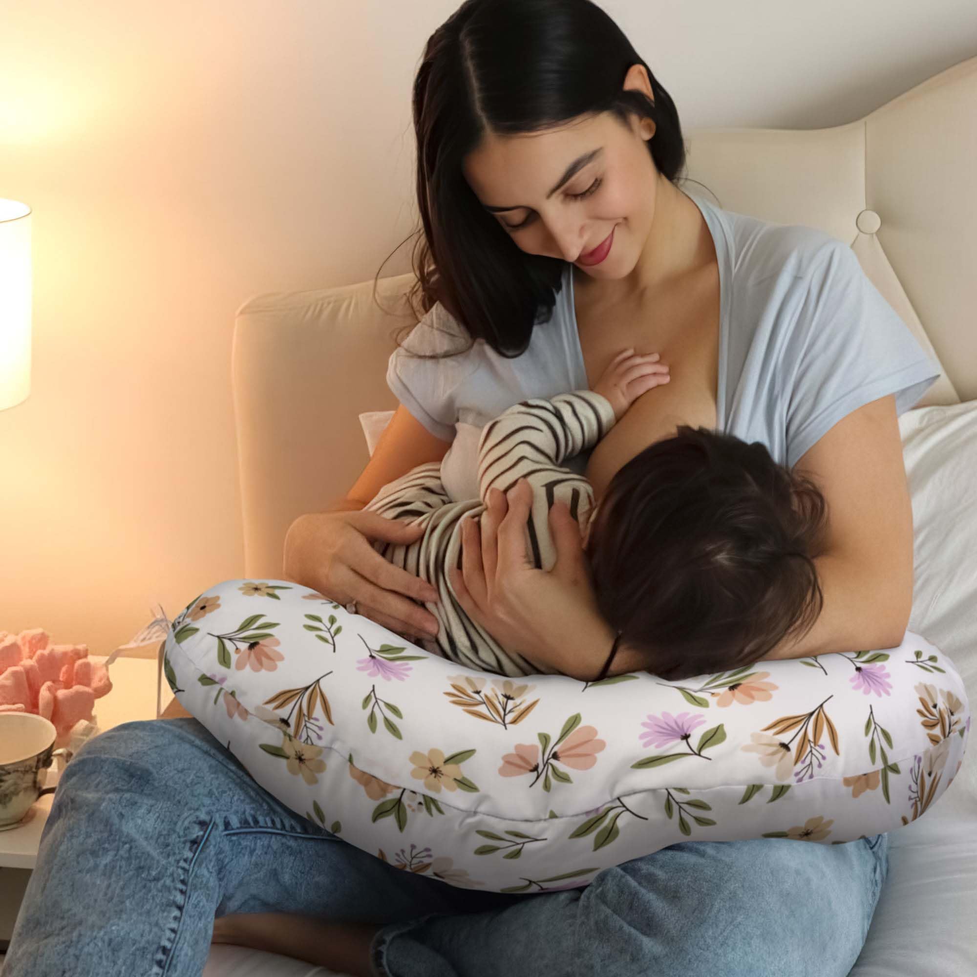 YOU HAVE OPTIONS: C-shaped design allows for multiple feeding stylesβcradle, cross cradle, football hold, bottle feeding