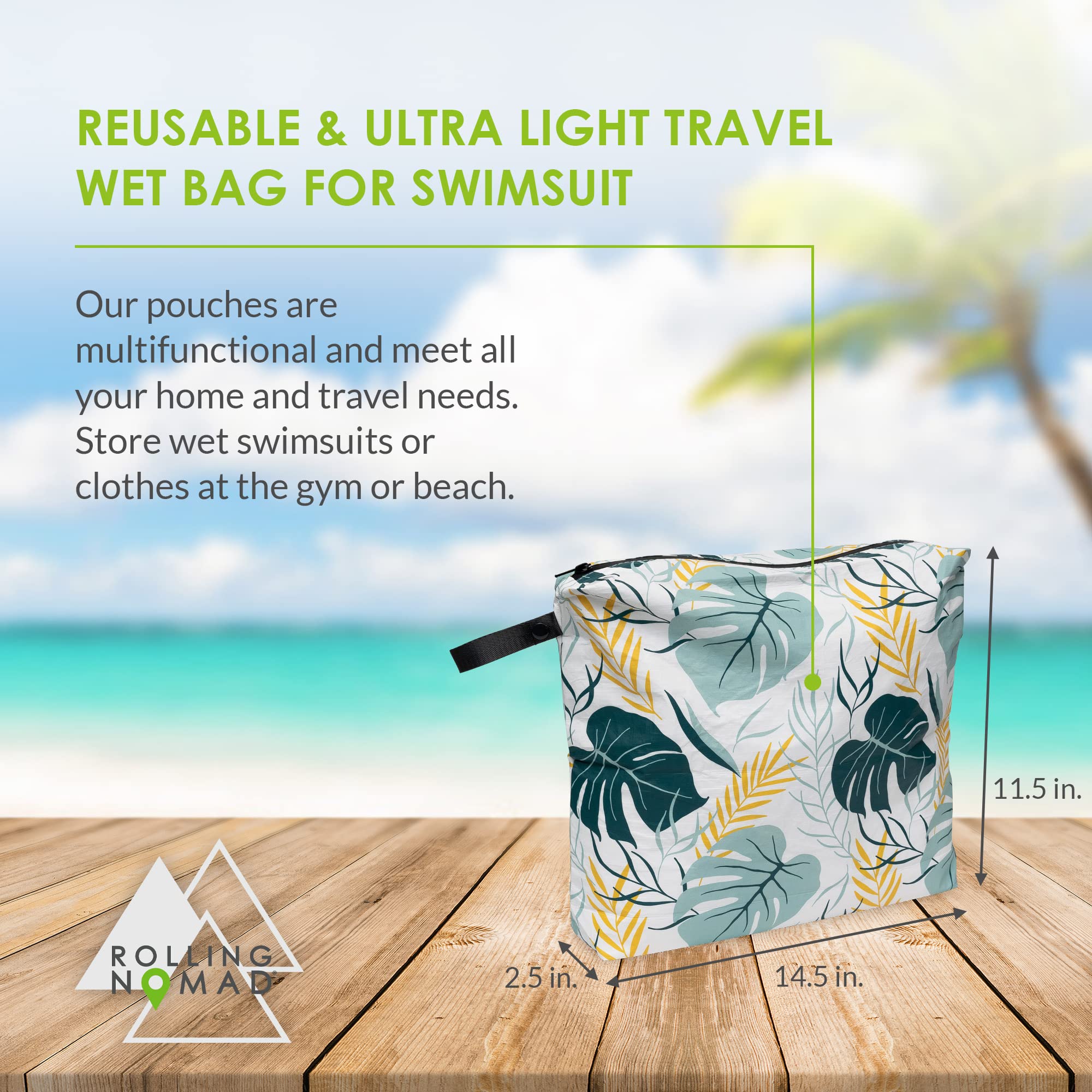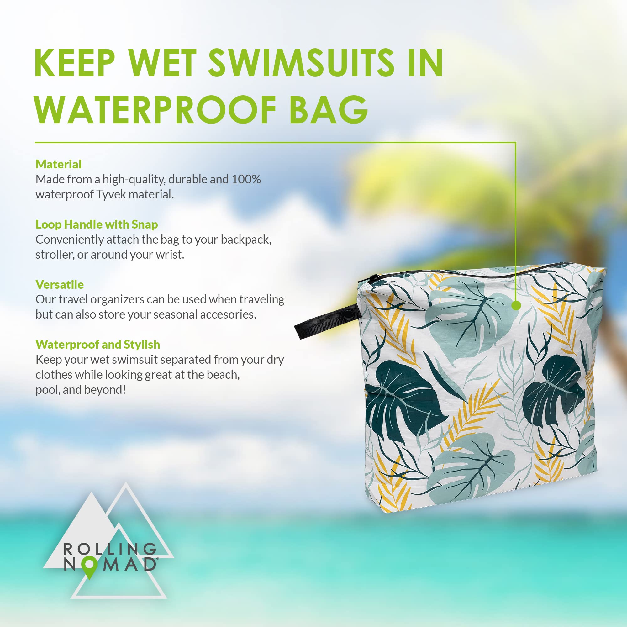 WATERPROOF DESIGN – Rolling Nomad’s wet bags are made from high quality, 100% waterproof Tyvek materials, ensuring that what you want to keep dry stays dry, and anything wet is securely stored in each bag