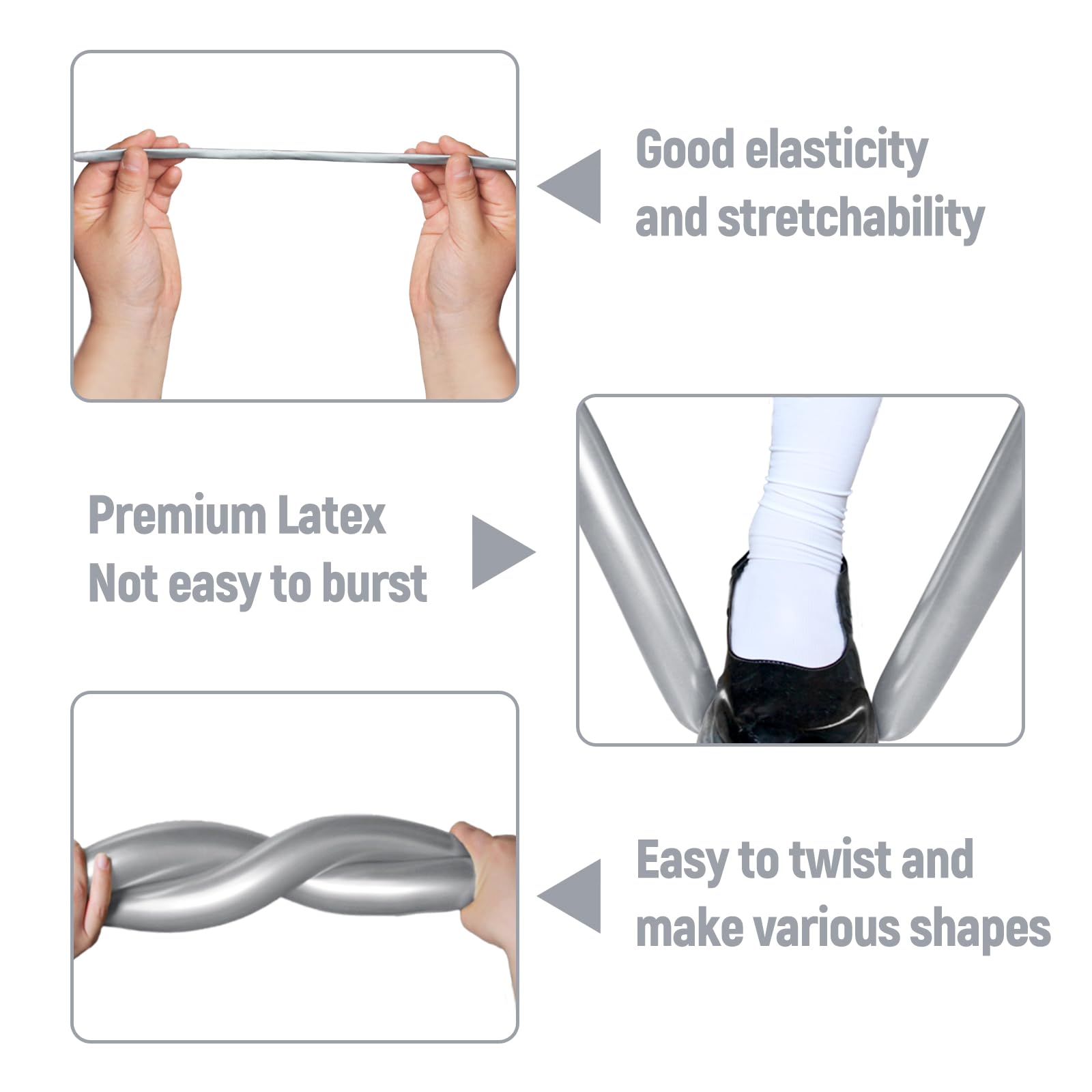 Wide application: Our metallic silver chrome animal balloons twisting balloons can be used anywhere anytime. balloon animal kit is suitable for various occasions like parties, school activity, birthday, wedding, clowns props, anniversary, festival,holiday decorations, Baby Shower,magic show,Kids' Party, Preschool ,Wedding Engagement, Easter.