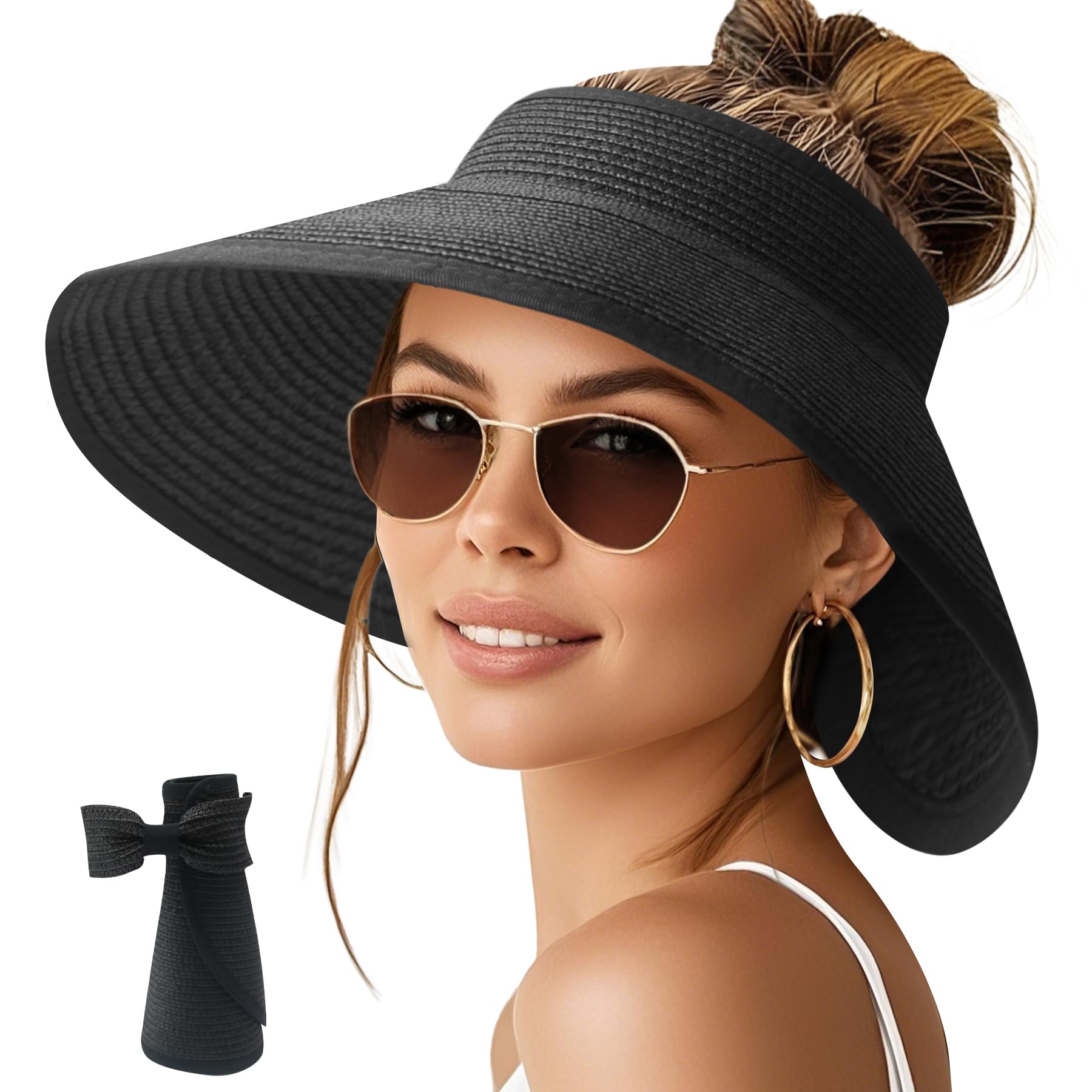 Description SUN PROTECTION: The sun hats for women feature a wide, stable brim that effectively shields your face and neck from the sun. With ample coverage, you can confidently play outdoor activities without worrying about getting sunburned FOLDABLE & PACKABLE: The sun hat is lightweight and foldable, making it easy to carry everywhere. Its foldable design ensures that the brim does not lose its shape, allowing you to protect yourself from the sun's rays wherever you go OPEN-TOP DESIGN: The sun hat not only blocks 98% UV rays but also boasts a functional style. The open-top design allows you to easily tie your hair up in a ponytail without messing up your hairstyle, and keeping it cool and breathable ADJUSTABLE SIZE FITS MOST: The sun hat featuring an adjustable hook and loop fastener at the back, offering a comfortable fit for all head sizes. You can easily adjust the hat's tightness to ensure maximum comfort during you use the hat WIDE USAGE: The sun hat is a good accessory for any outdoor activity, such as beach, pool, park, gardening, or traveling. And the hat is made of high quality paper straw, tighter weave, very strong and stable