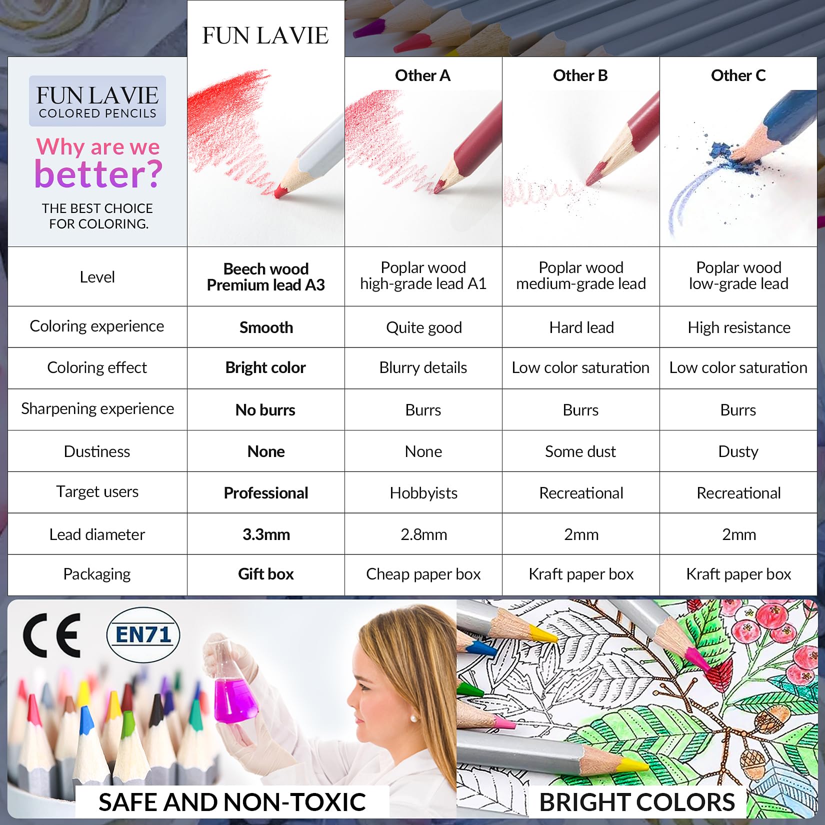 Smooth Effortless Blending for Vibrant Colors:With the 3.3mm soft core, these professional colored pencils glide smoothly across the paper, offering flawless blending and color transitions. Perfect for adult coloring books, sketching pencils, or art coloring pencils, they allow you to effortlessly mix colors, creating seamless gradients for all your artistic projects. Whether you're adding depth to a coloring book for adults or enhancing drawing colored pencil