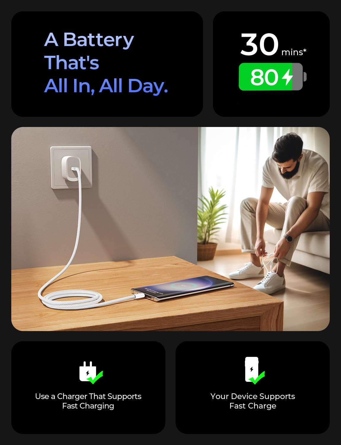 【Right for ALL Your Devices】This is the USB-C to USB-C cable Not the USB-C to USB-A cable, Compatible with virtually all USB-C devices including phones, tablets, and laptops. Such as Samsung Galaxy S23/S22/S21+/S21/S20/ S20+/ S20 Ultra/ Note 10, MacBook Air/Pro 13'', iPad Mini 6, iPad Pro 2021/2020/2018, iPad Air 2020 and more.