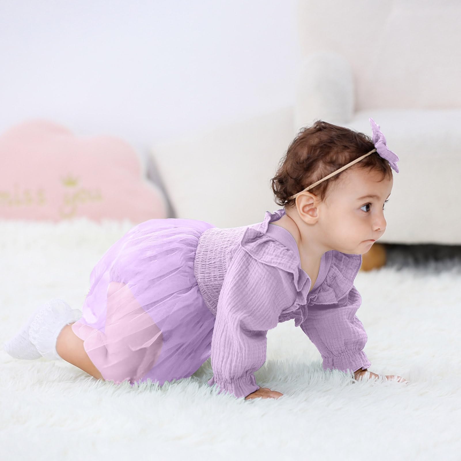 Material: Baby girls birthday romper made of Cotton+tulle fabric, super soft and breathable, comfortable absorbent to wear, friendly to baby's skin, cares for newborns too.