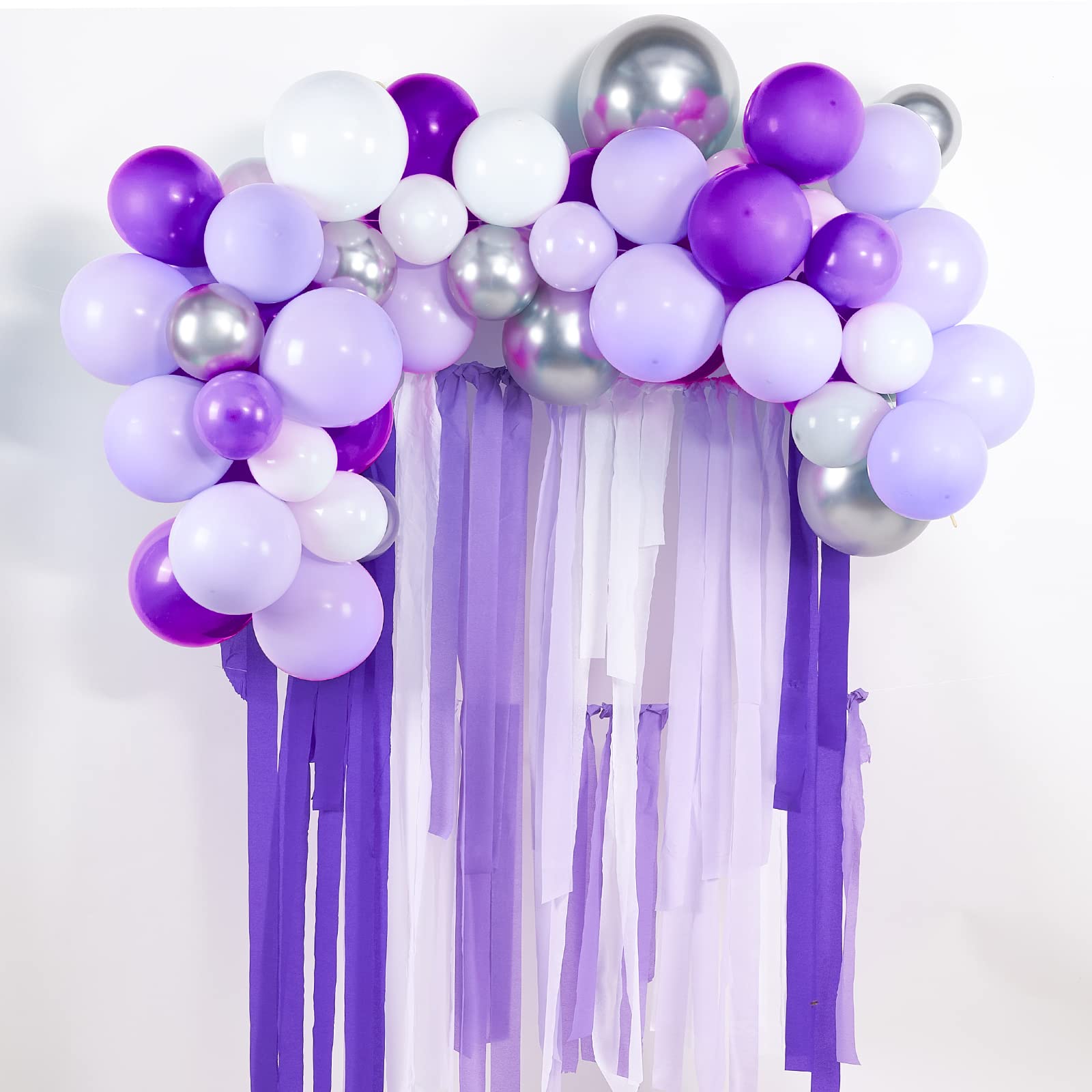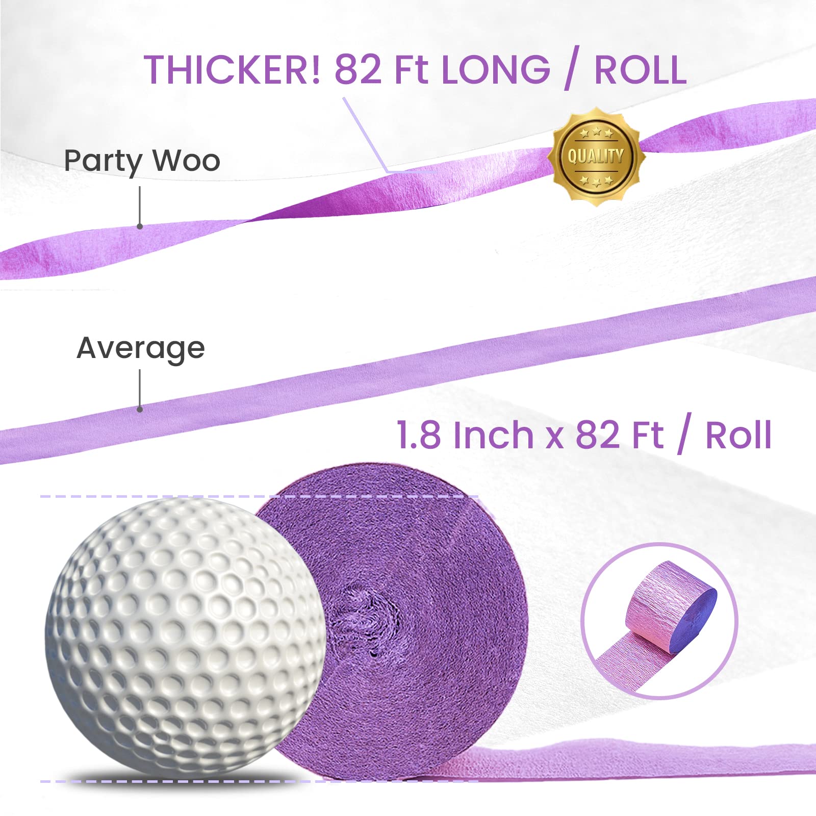 Package Included:You will receive 6 precisely rolled party crepe paper in light purple, dark purple, lavender, silver and white colors, each roll is 1.8 inch x 82 ft, these crepe paper streamer rolls are enough for your baby shower and engagement needs