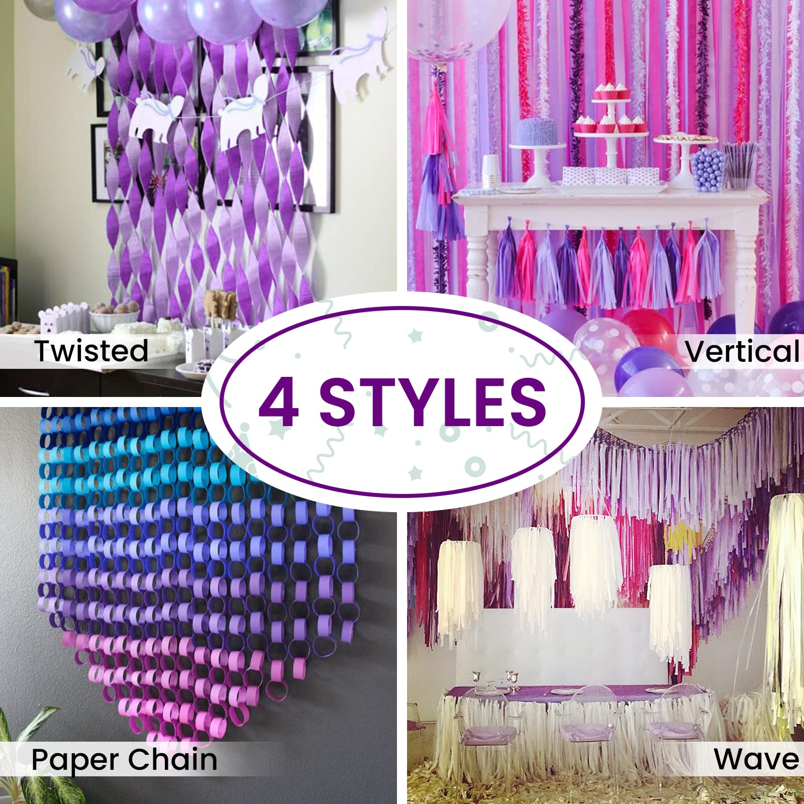 Easy to Decorate:These purple crepe paper streamers are easy to untie.You can twist paper streamers together into spirals, Use the crepe paper roll for backdrop, match different colors to give your baby shower or bachelorette a customized look