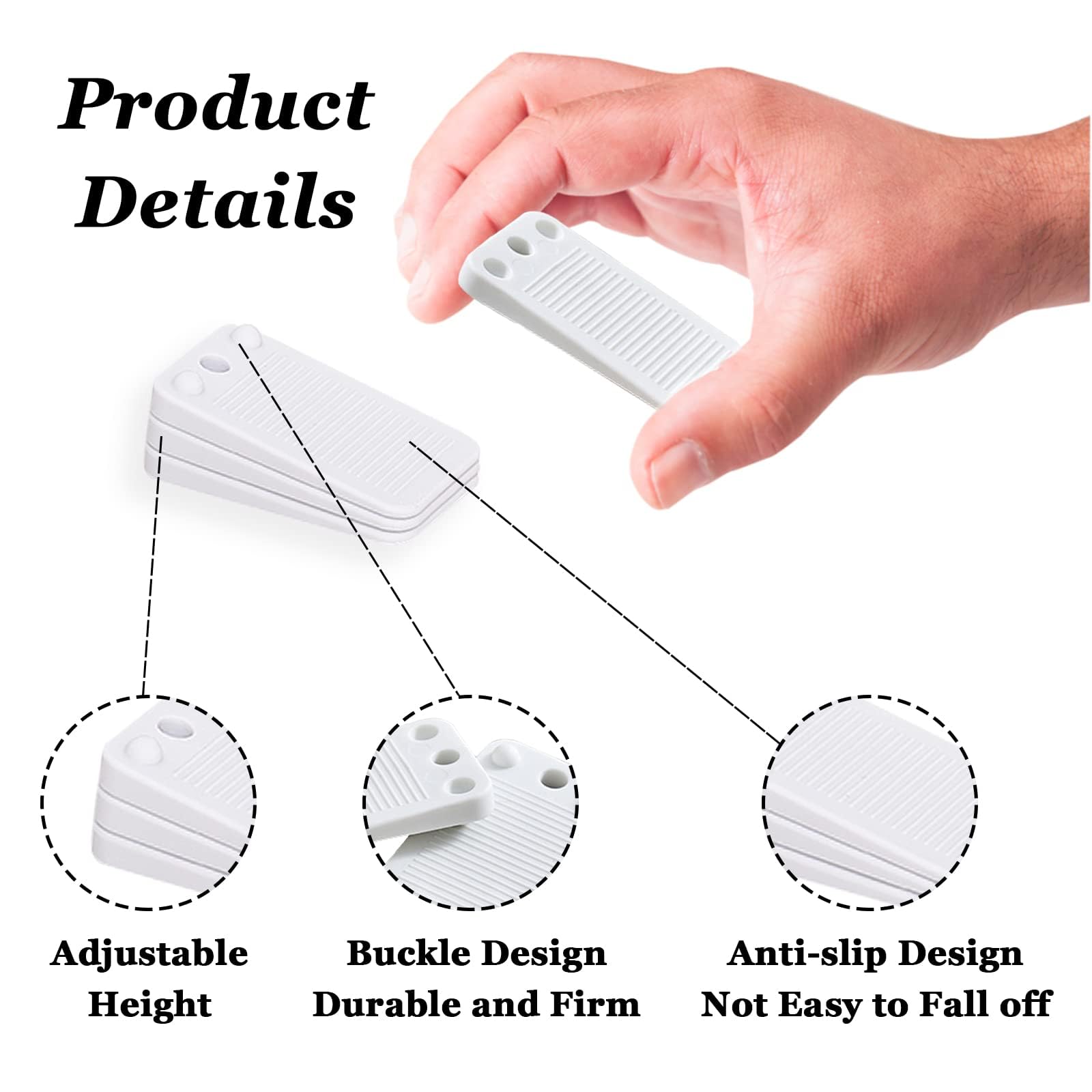 【EXCELLENT ANTI-SLIP EFFECT】The home improvement wedge levelers are designed with anti-slip texture on both sides, making them firmly hold the furniture in place, preventing them from slipping or sliding.