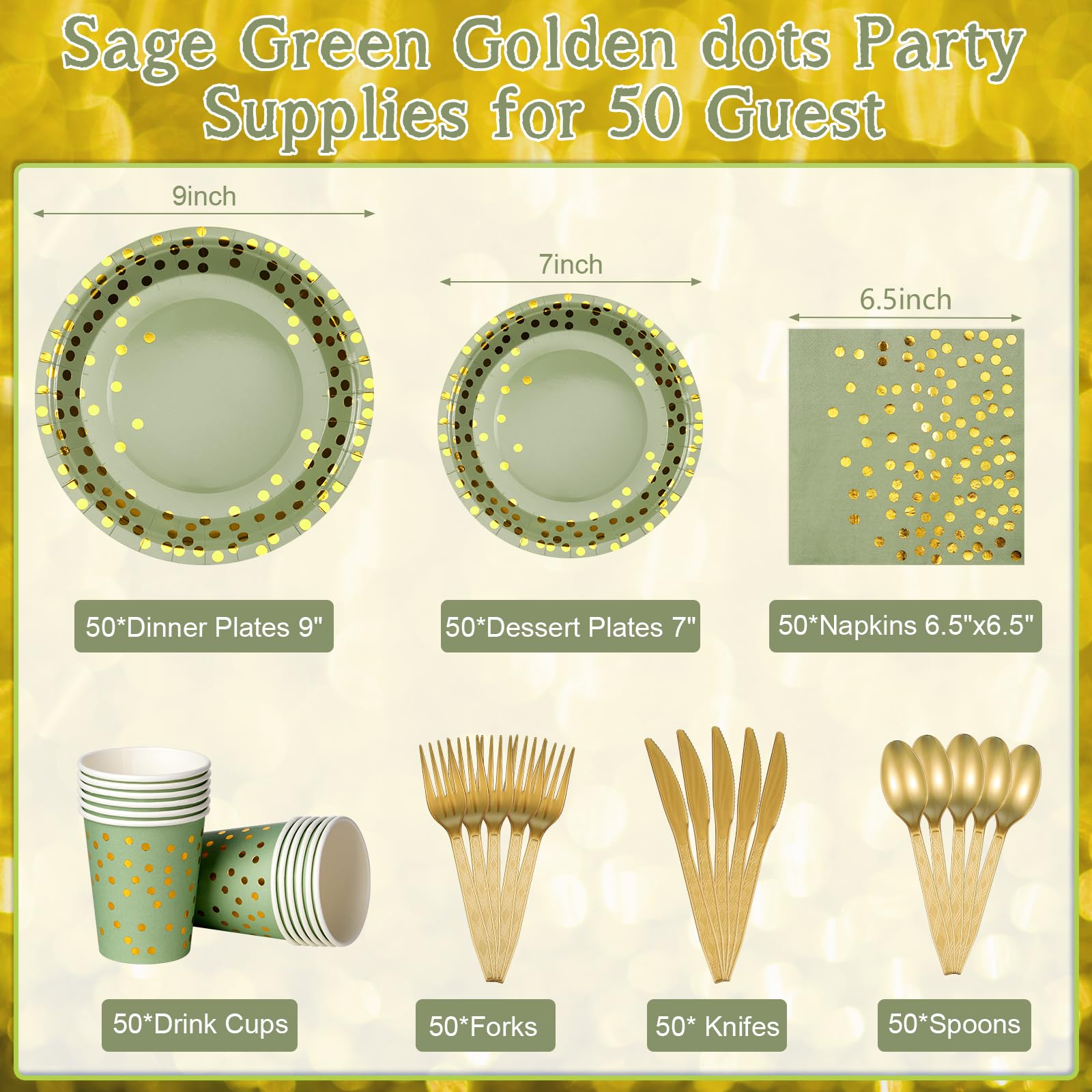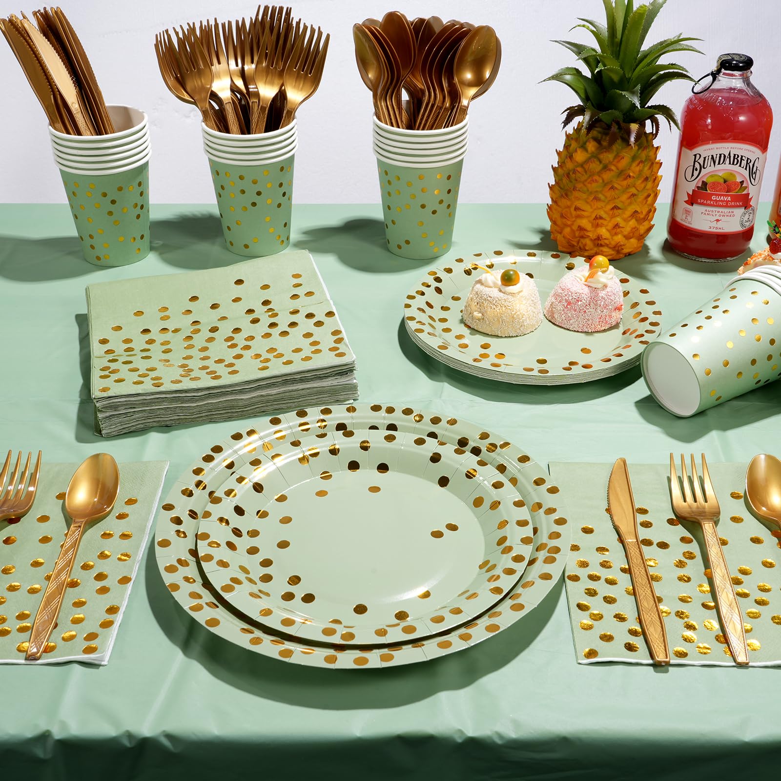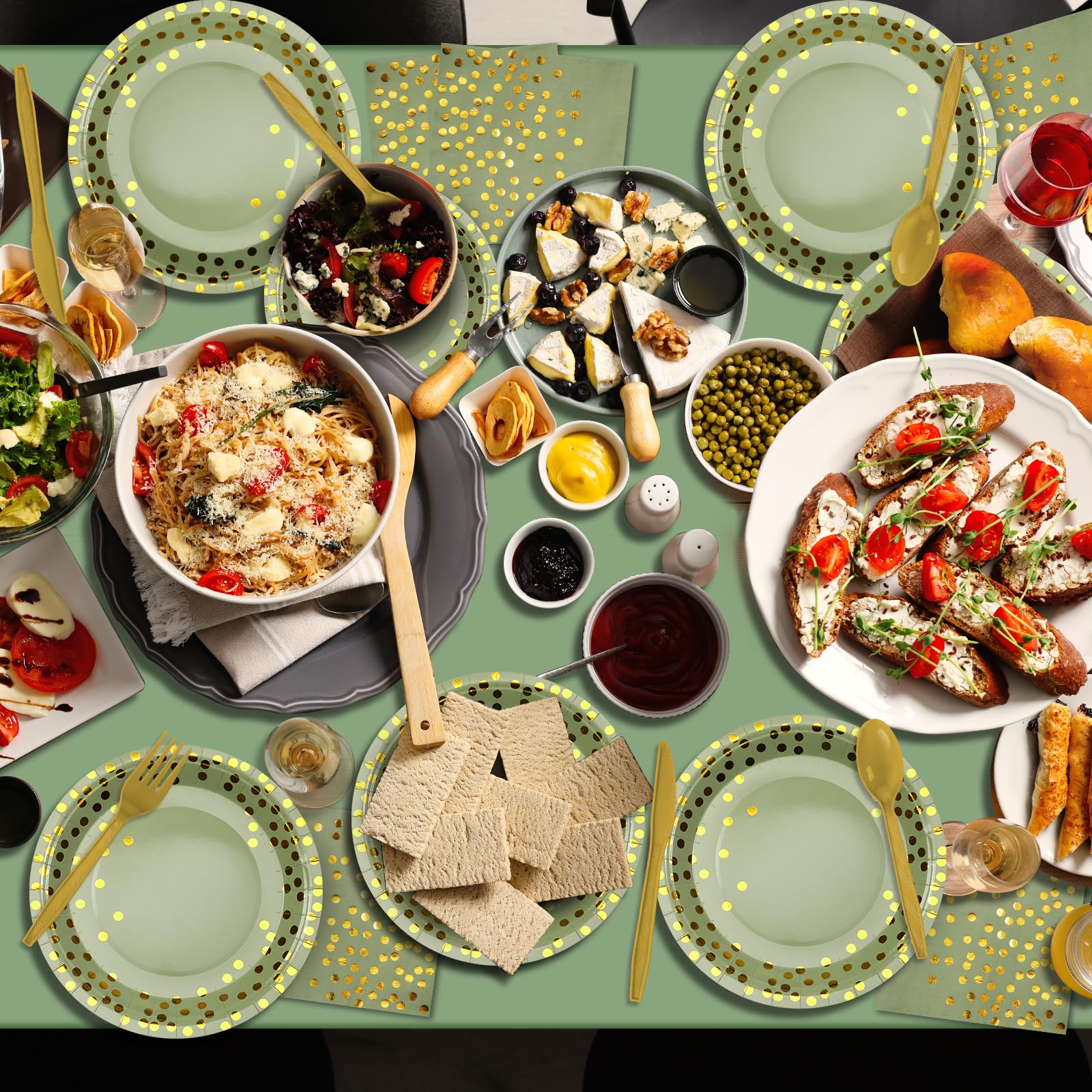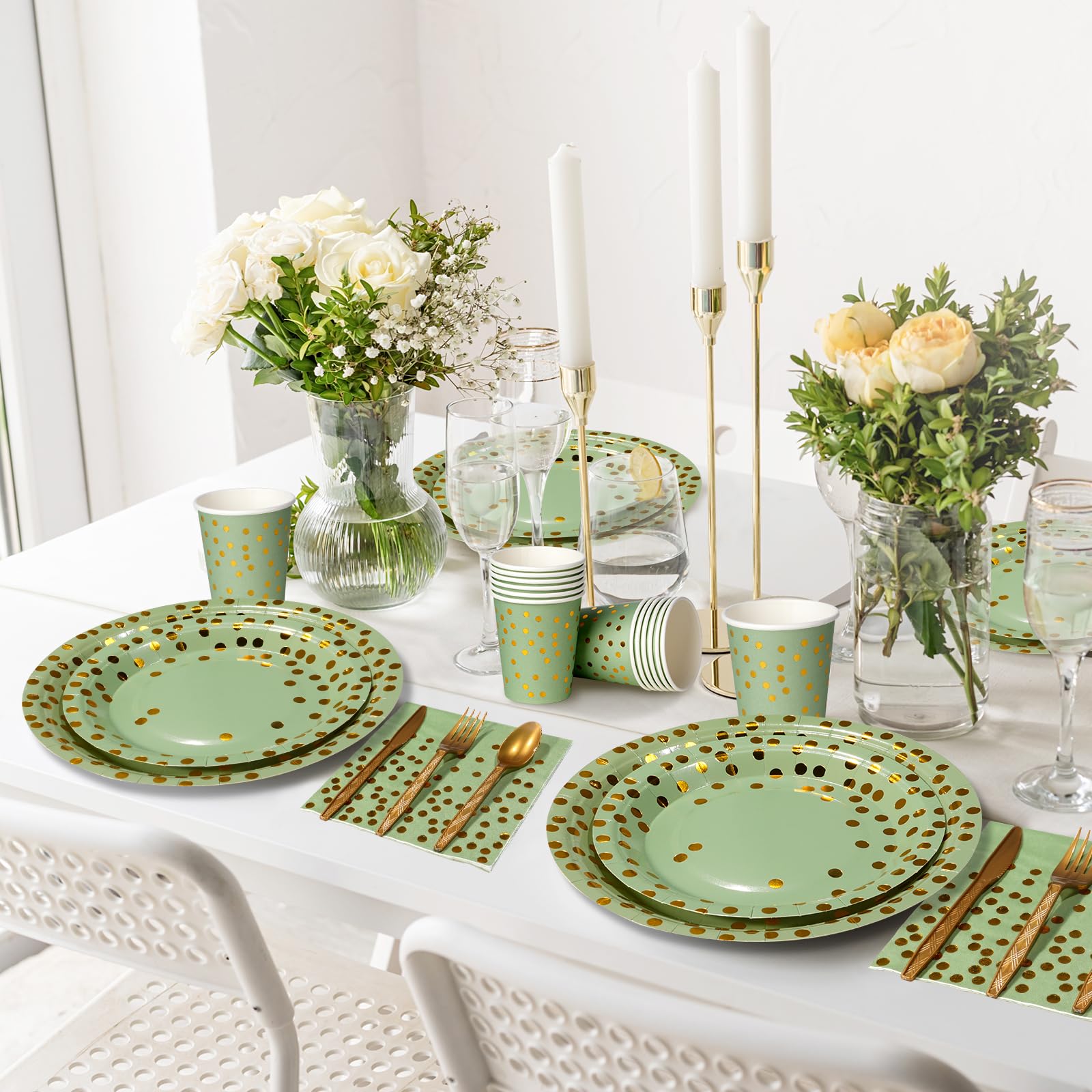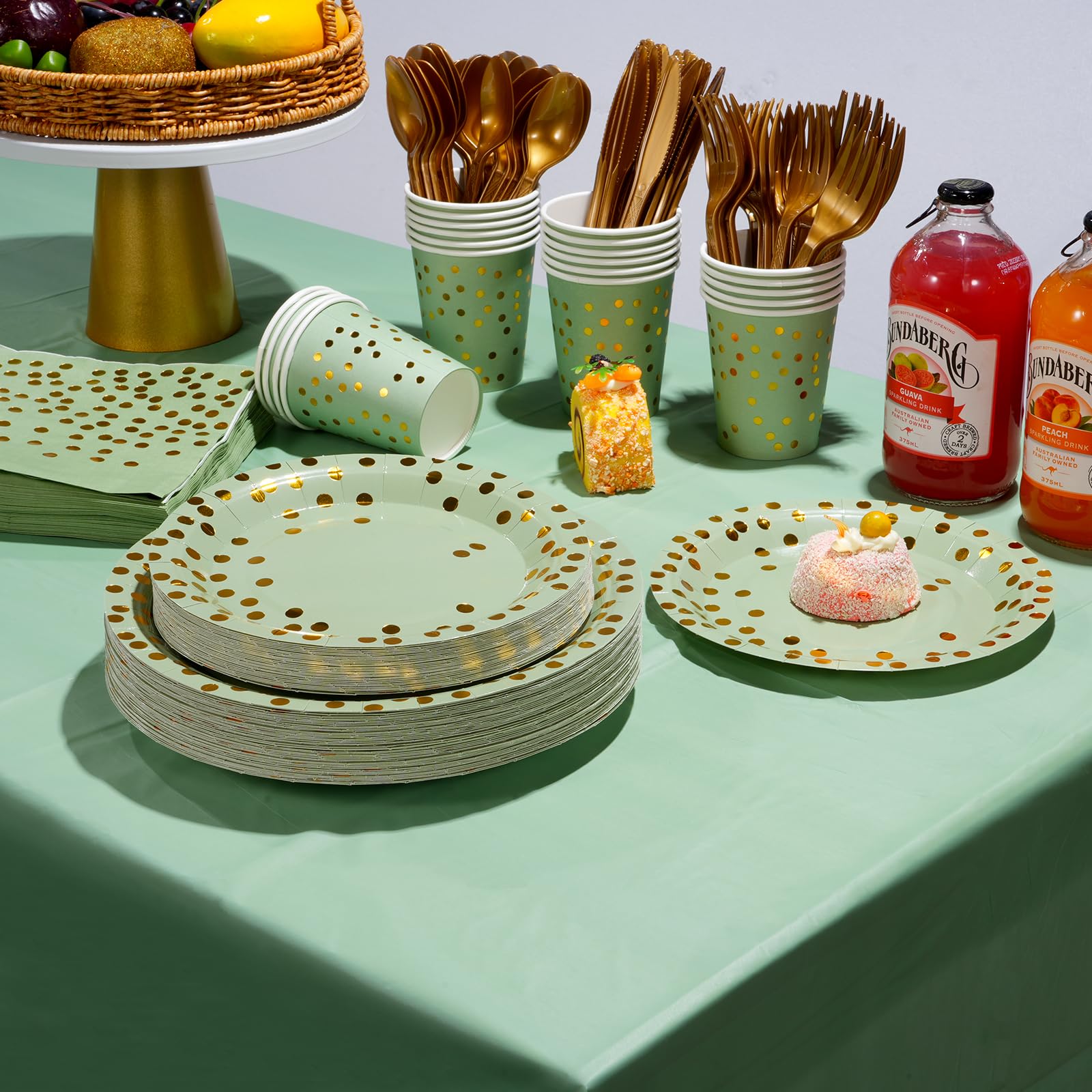 【Fresh Design】This sage green party decorations plates and napkins are designed with a sage green background and is dotted with gold polka dot, adding color to your table and bringing a fresh and natural atmosphere that will surely be loved by everyone, these green and gold plates will make your party vibrant.