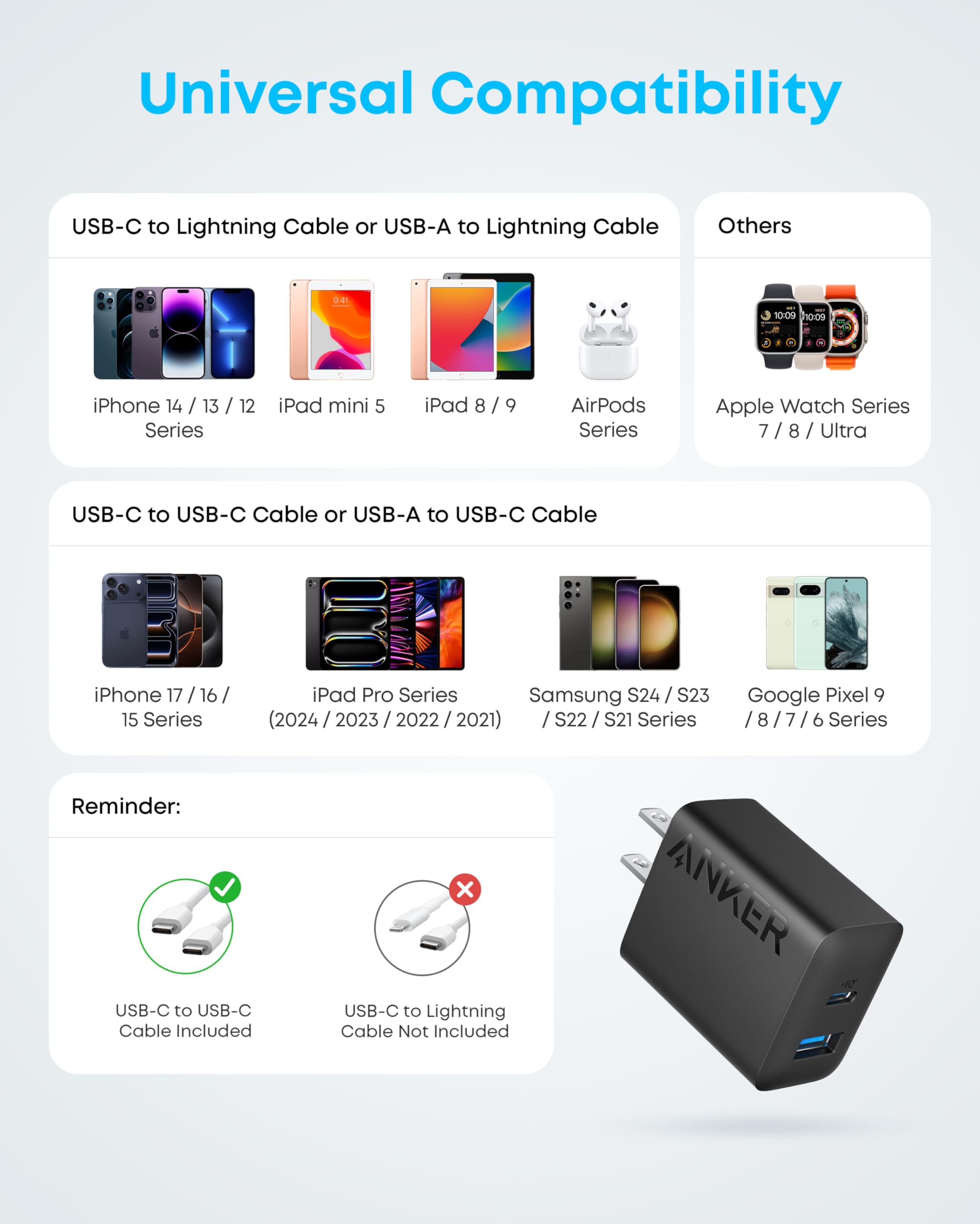 Safety Features You Can Trust: Anker's proprietary system includes overvoltage protection, temperature control, and other safety features designed to help safeguard your devices while charging.