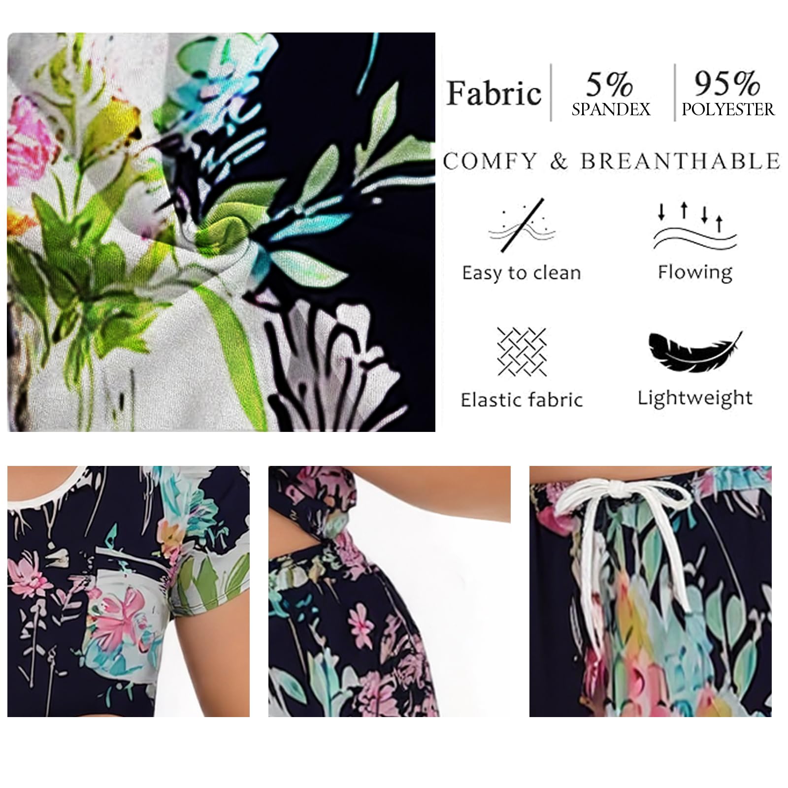 Ultra-Soft Women's Short Sleeve Pajama Set – Breathable 95% polyester and 5% spandex blend ensures all-night comfort with stretchy, lightweight fabric perfect for hot sleepers.