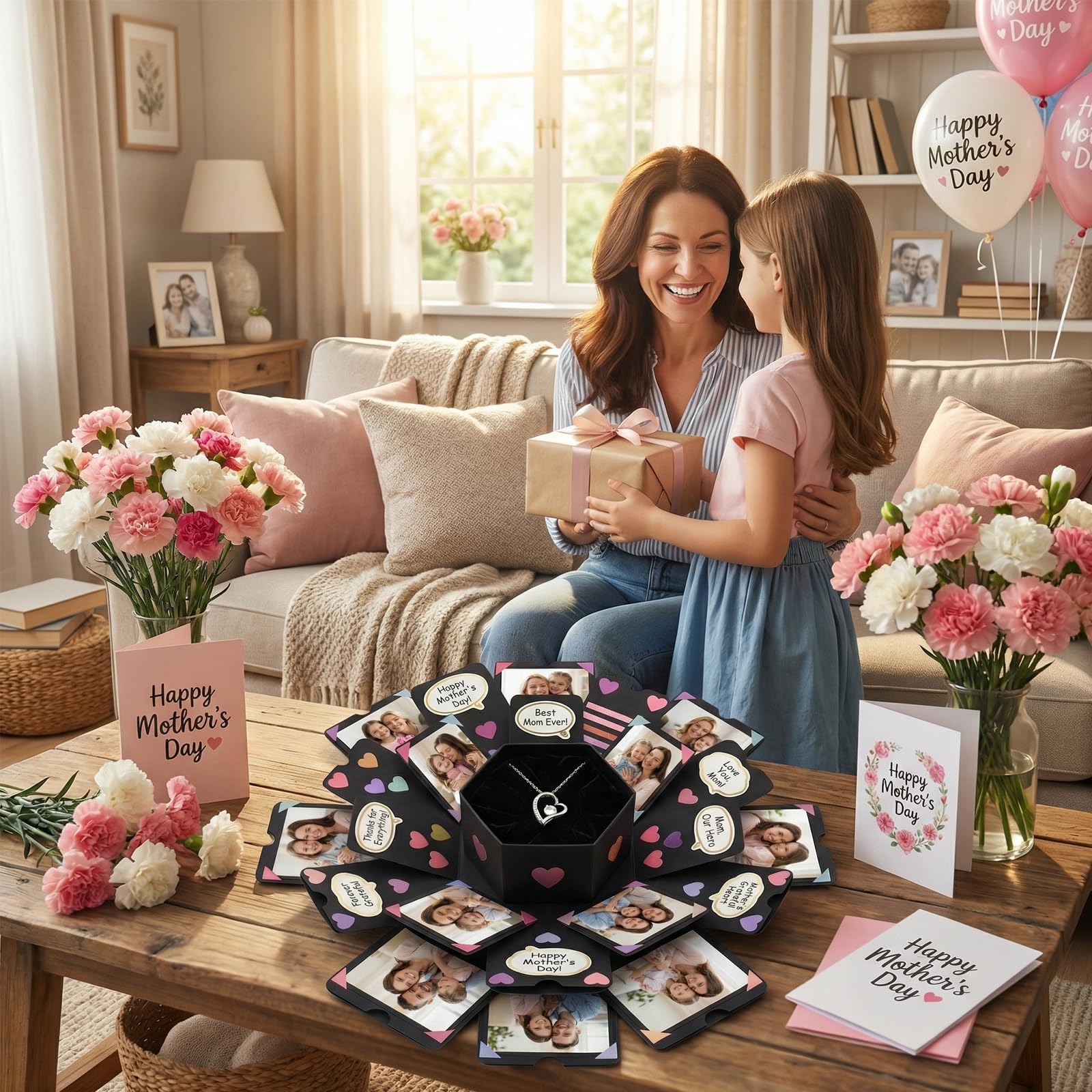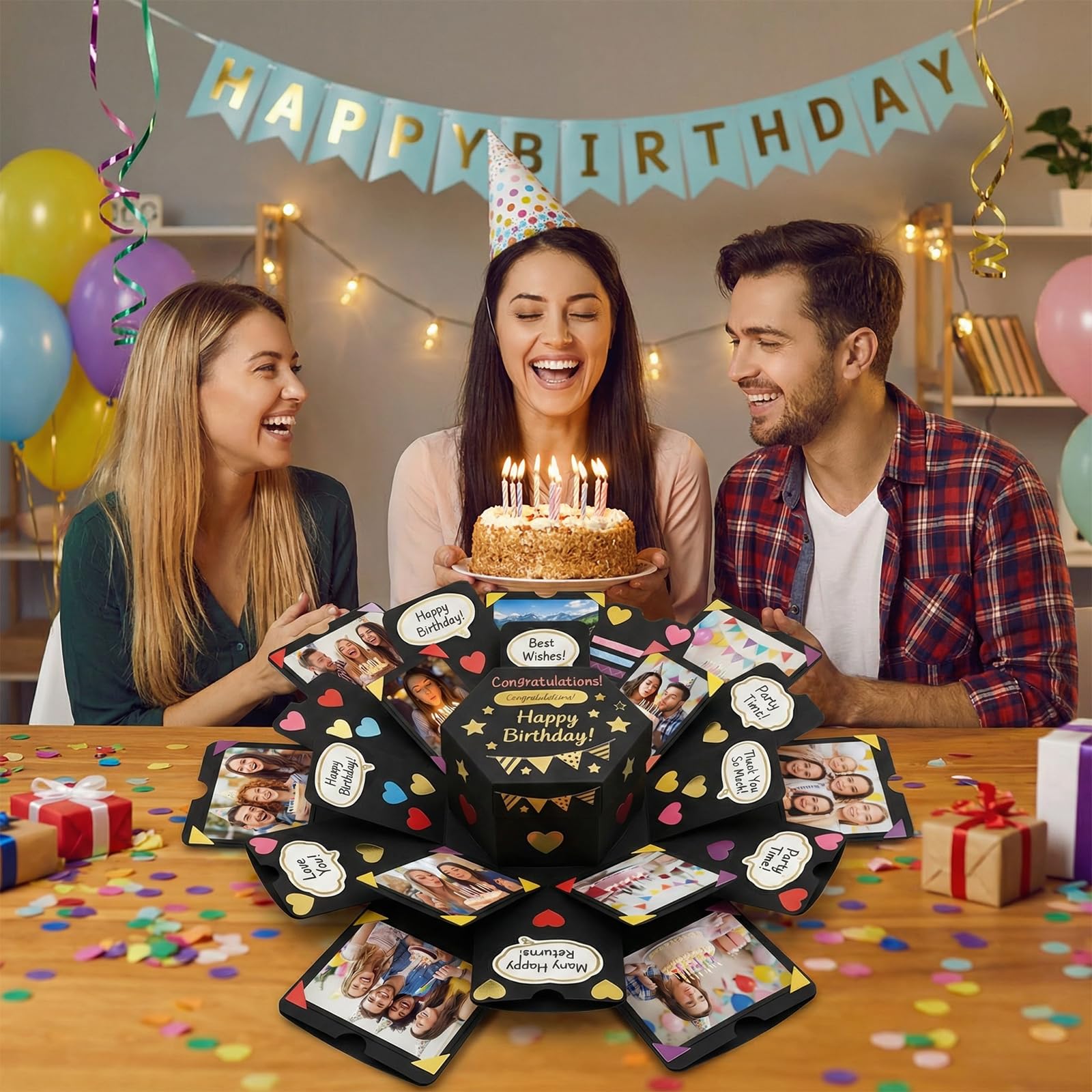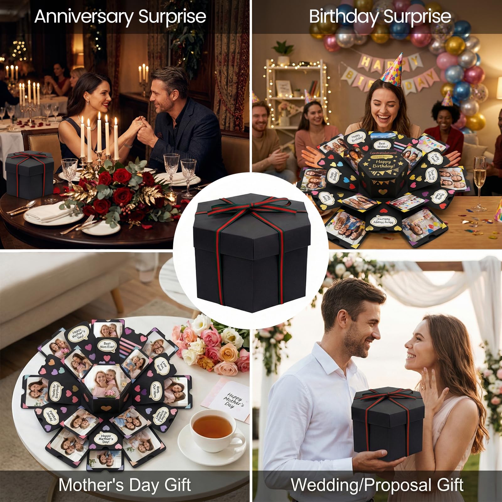 EXPLODING PHOTO ALBUM - Once opened, the exploding gift box expands with multiple layers. You can custom the space by pasting favorite pictures and writing personal notes to create a unique scrapbook.