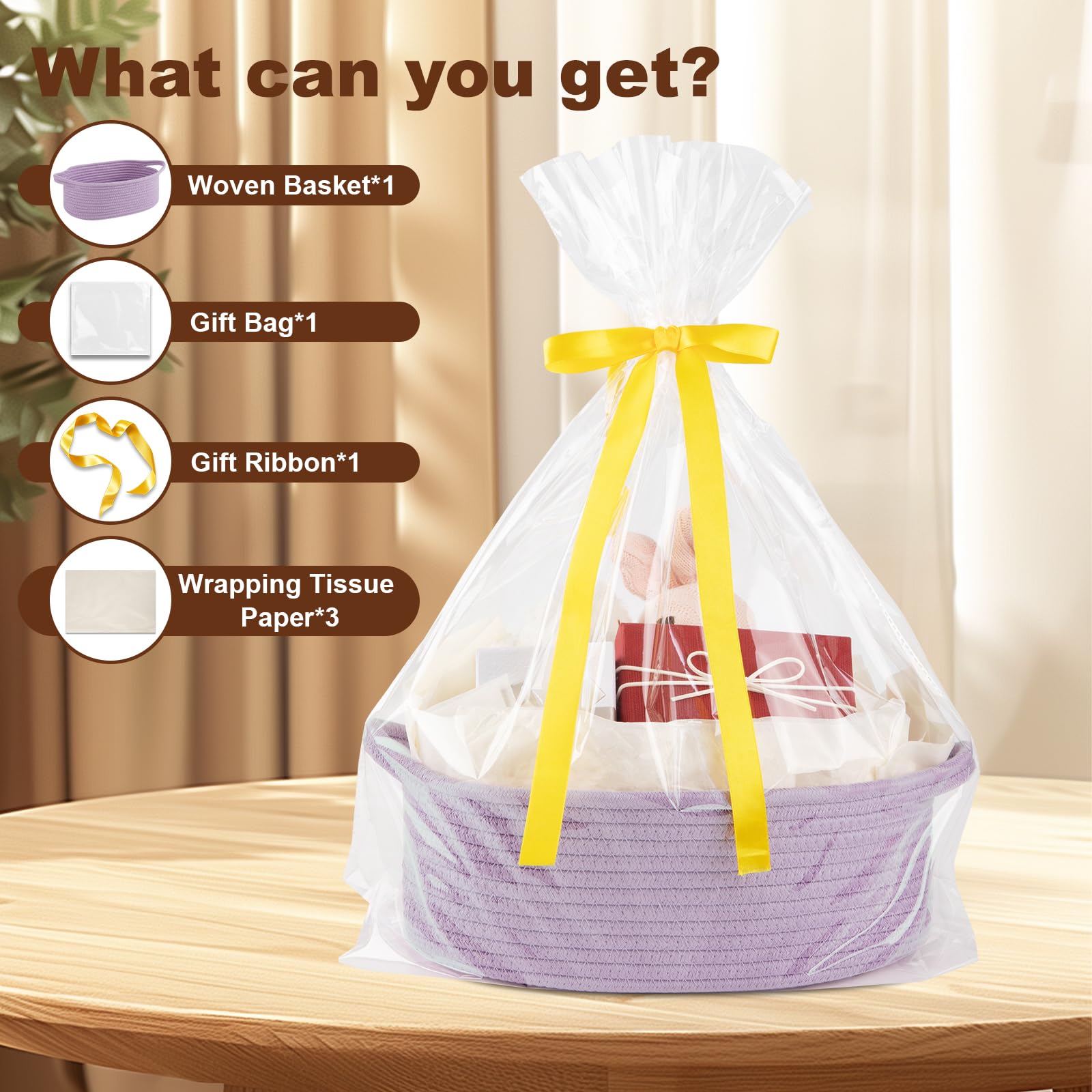 Ideal gift choice: This empty gift basket is cute and stylish, each small basket comes with a gift bag and ribbon, as well as 3 sheets of gift wrap tissue paper, which can better decorate, protect the stored items and can be used as a gift basket at any time