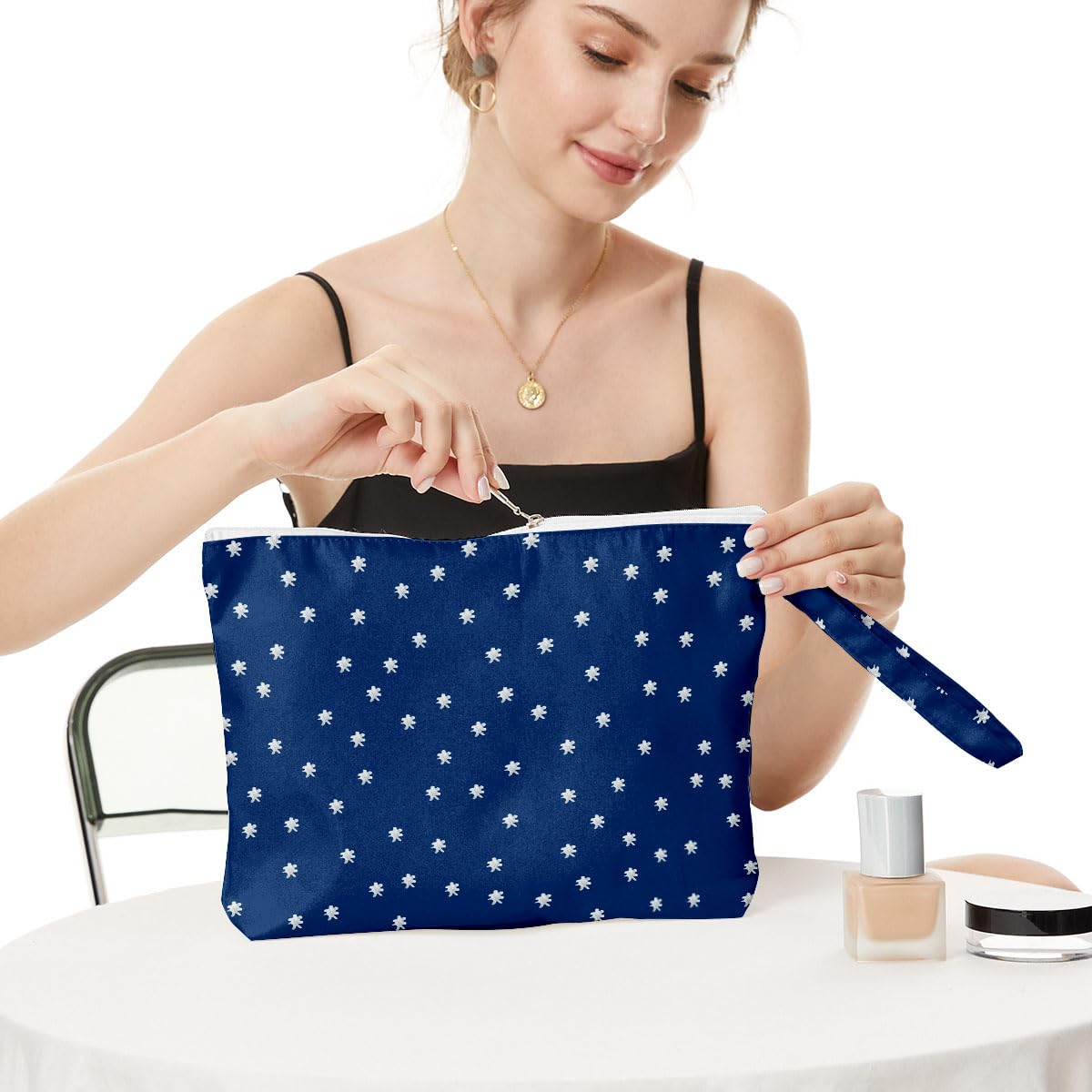 Our makeup bag with waterproof material will help keep your cosmetics and other stuff dry. Large capacity can hold all kinds of cosmetics, electronic products, pens, diapers, swimsuits, etc., not only can be used as a cosmetic bag, but also as zipper pouch, toiletry bag, wet dry bag, diaper bag and so on. It is not only suitable for your own use, but also for gifts. Suitable for different scenes or festivals, to your family, friends, colleagues, etc. The bag is a great choice for holiday gifts, such as birthday, Thanksgiving, Christmas, New Year, Valentine's Day, etc