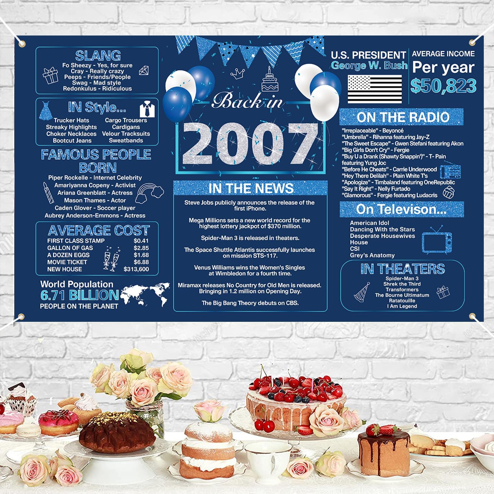 【Back in 2007 Theme】 - Take a look back in 2007, This 2007 birthday poster makes a great conversation starter! Featuring historical facts from 2007, attract more families or guests to join in the fun with you.