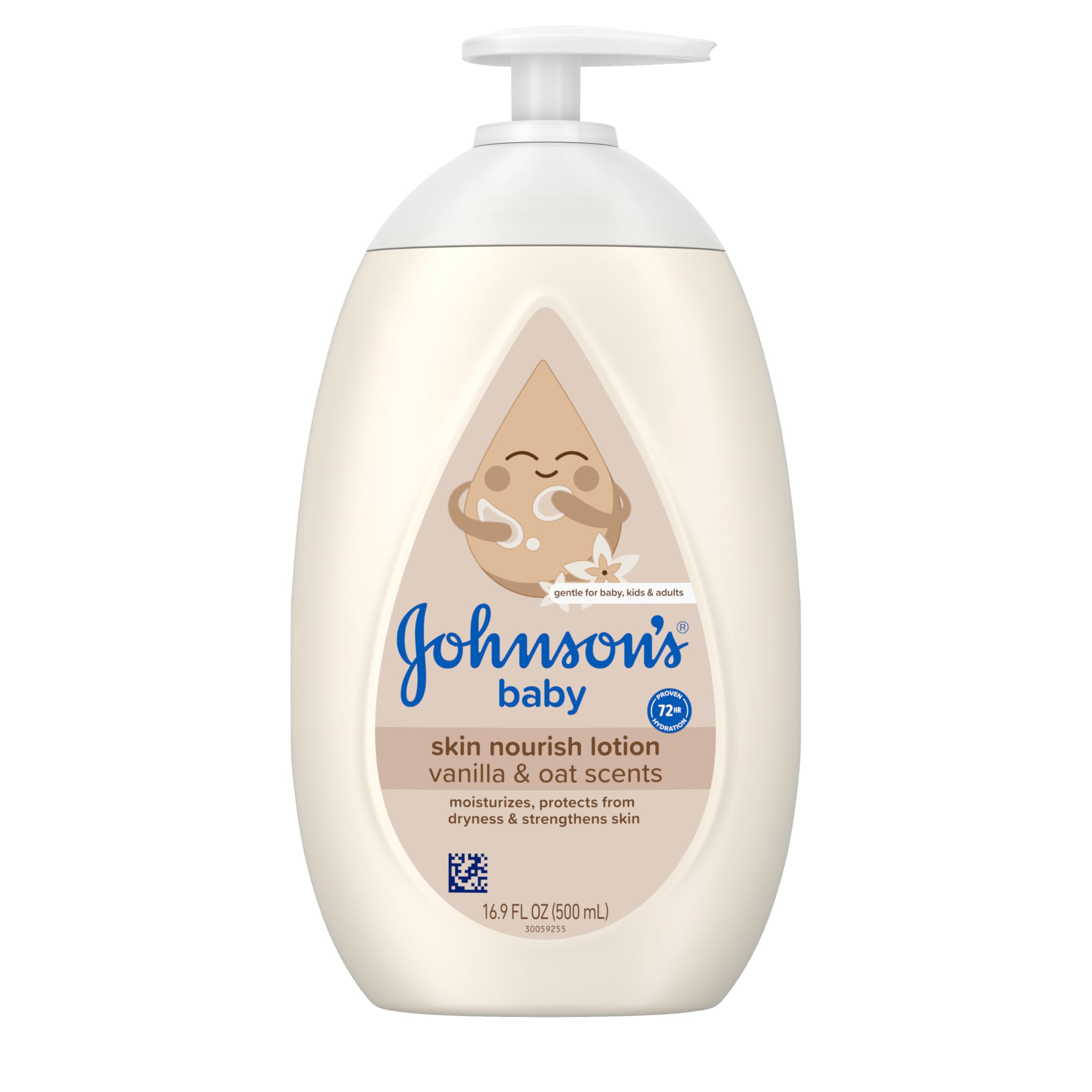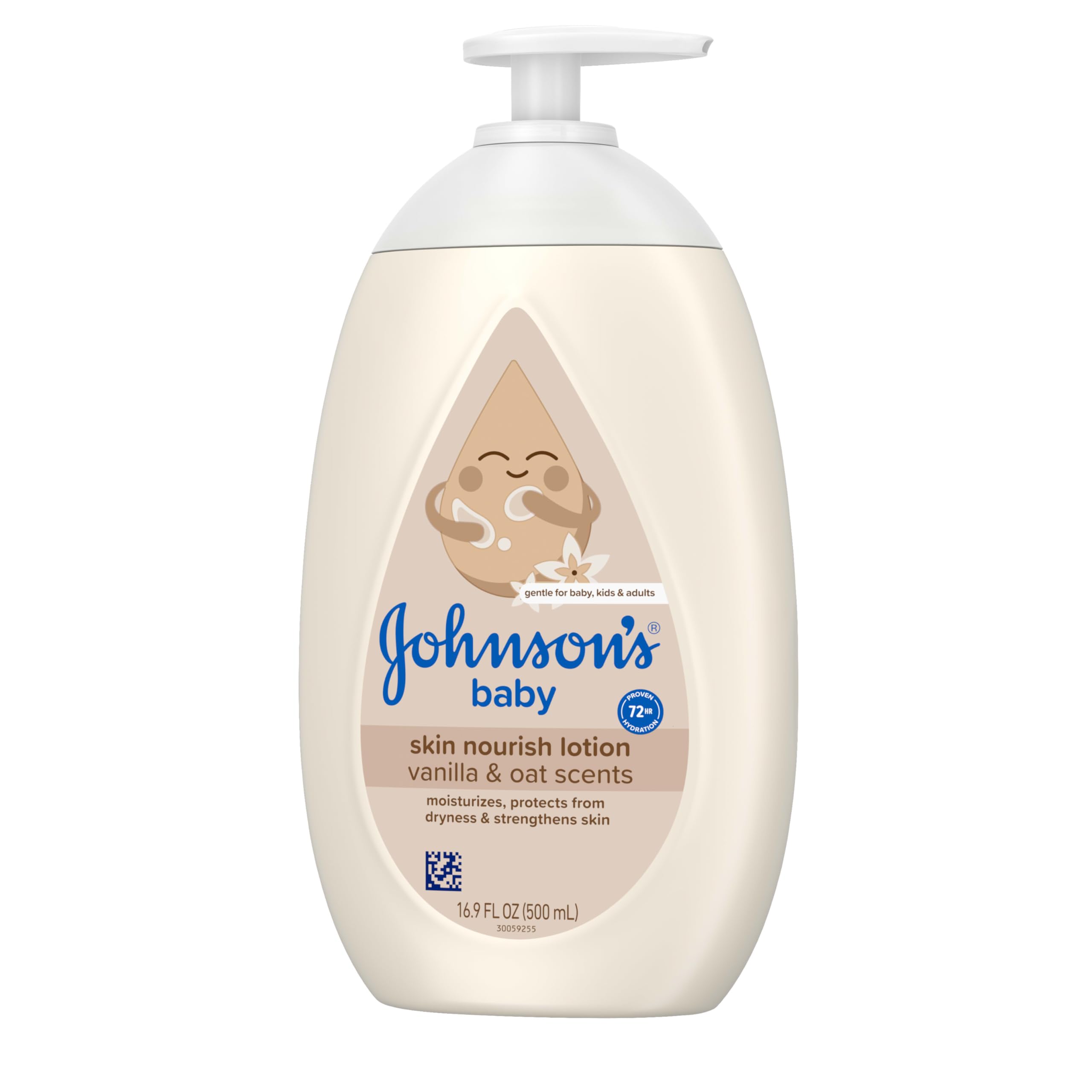 Johnson's Skin Nourishing Baby Lotion, Vanilla & Oat Scents, Hypoallergenic Baby Body Lotion for 72 Hour Hydration Until Baby's Next Bath Moisturizes & Protects from Dryness, 16.9 fl. oz