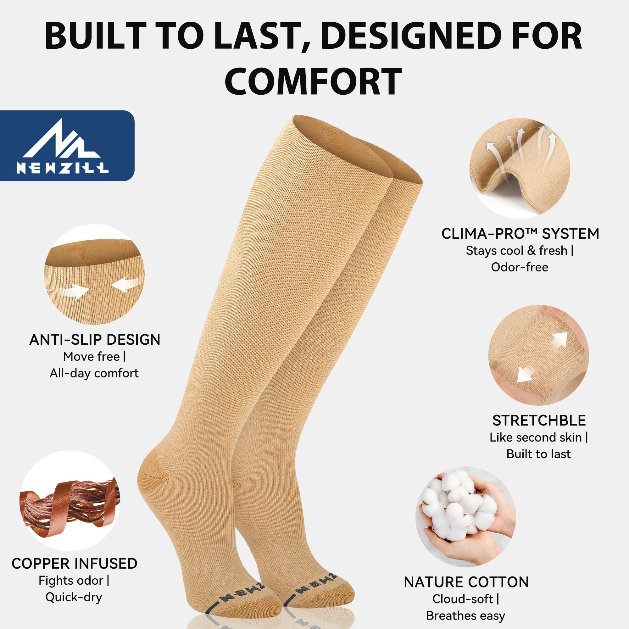 【COMFORTABLE & STYLISH】Newzill knee high dress compression socks are made of 60% Cotton, let your feet stay comfortable and dry in a variety of weather settings. Our Dress Socks are great for business casual, office outfit, long hours flight and weekend wear; you'll always look professional and stylish while enjoying the utmost comfort