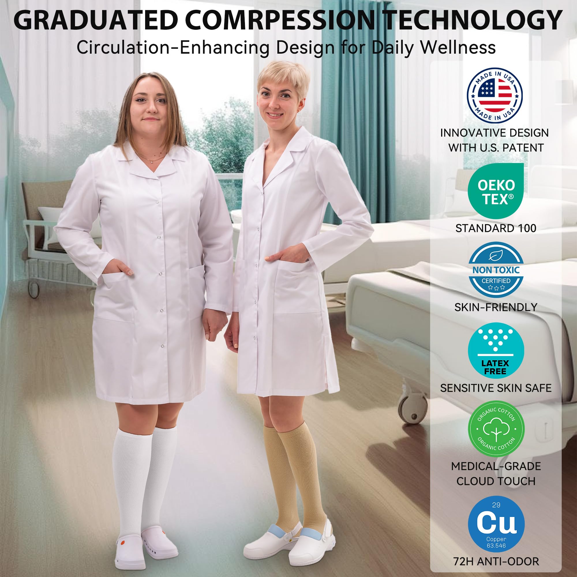 【GRAB CONTROL OF YOUR WELLBEING IN STYLE】An Excellent compression hose very durable with a fashionable look and variety colors available. Washable designed with Quality Lycra Fabric built for durability. Customers agree the comfort is amazing. Use them on a plane during that 9 hr flights or during that 6 mile walk Your durable socks work with your routine. Feel the shock absorption effect instantly that really helps reduce fatigue and swelling in your lower leg
