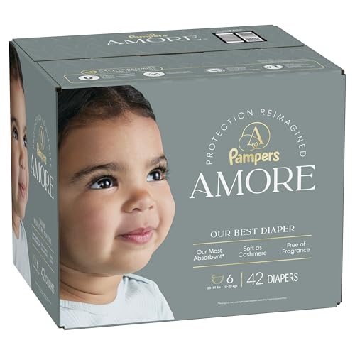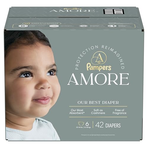Introducing Pampers Amore—our best diaper. Thoughtfully crafted with 60+ years of Pampers quality and expertise, reimagined for today. Built with 5 layers of protection, it is our most absorbent diaper*. Pampers Amore diapers feature an all-around blowout and leak-guard barrier to help prevent up to 100% of leaks. Plus, they are built with our KeepDry liner for unbeatable dryness and comfort**. These diapers provide premium performance without compromise. They are Dermatologically accredited by the Skin Health Alliance and tested for 1000+ Harmful Chemicals. They are hypoallergenic and free of fragrance, parabens, elemental chlorine and latex (no natural rubber). Because real luxury means peace of mind. Pampers Amore diapers are designed with the finest materials. They are soft as cashmere, making them extra gentle on your baby’s delicate skin. Each diaper features delicate patterns as cute as your little one with a wide wetness indicator that lets you know when they go. Because when it comes to love, there's no such thing as good enough. Give them the best. Pampers Amore—made with love in every detail.among U.S. non-overnight taped diapers; excluding Super Economy Pack **Based on size 4 Pampers Amore. 3 typical wettings of 75ml under 0.5psi pressure. Among day-and-night taped diapers