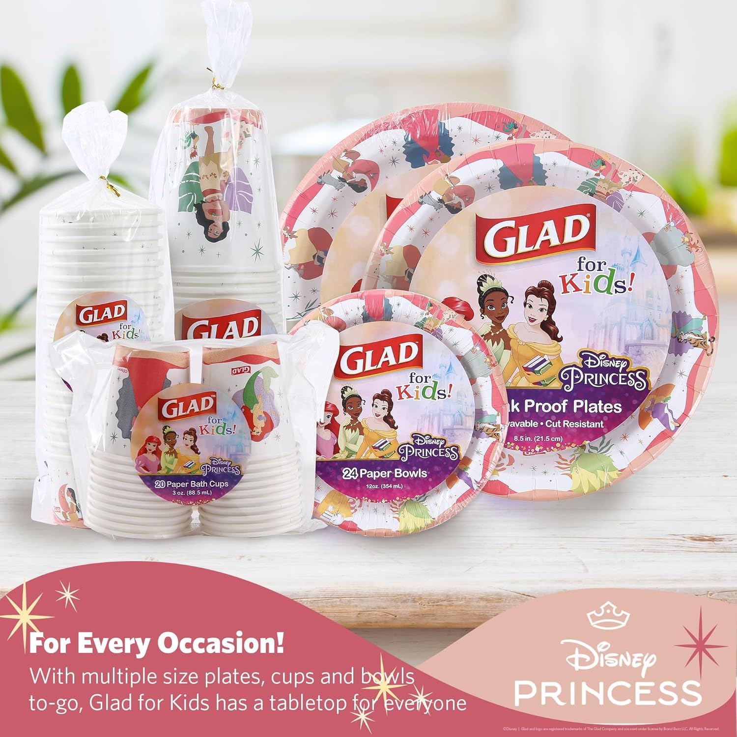 Glad for Kids believes in bringing a little fun to your everyday routine! So, when it’s time to rinse and swish, let your kids use cute rinse cups with their favorite character designs! Disney Princess "Magic is in All of Us" Mini Paper Bathroom Cups are the perfect kid-friendly size, measuring just 2.25 inches tall and holding 3 ounces of fluid. And because they’re from Glad for Kids, parents can trust that they are soak-proof and sturdy. Each pack contains 20 mini paper cups featuring several Disney Princess characters and the phrase “Magic is in All of Us," bringing a touch of fun to every rinse. These bathroom paper cups are specifically designed for rinsing the mouth after brushing teeth or using mouthwash. Made for daily use, they're disposable for effortless cleanup, ensuring a hygienic experience every time. Not just for daily use, these mouth rinse cups are also perfect for parties or any occasion where a sprinkle of fun is desired. Make oral hygiene fun and captivating for your child with Disney Princess Mouth Rinse Cups. Whether for daily use or special occasions, these mini paper cups add charm and convenience to every rinse.