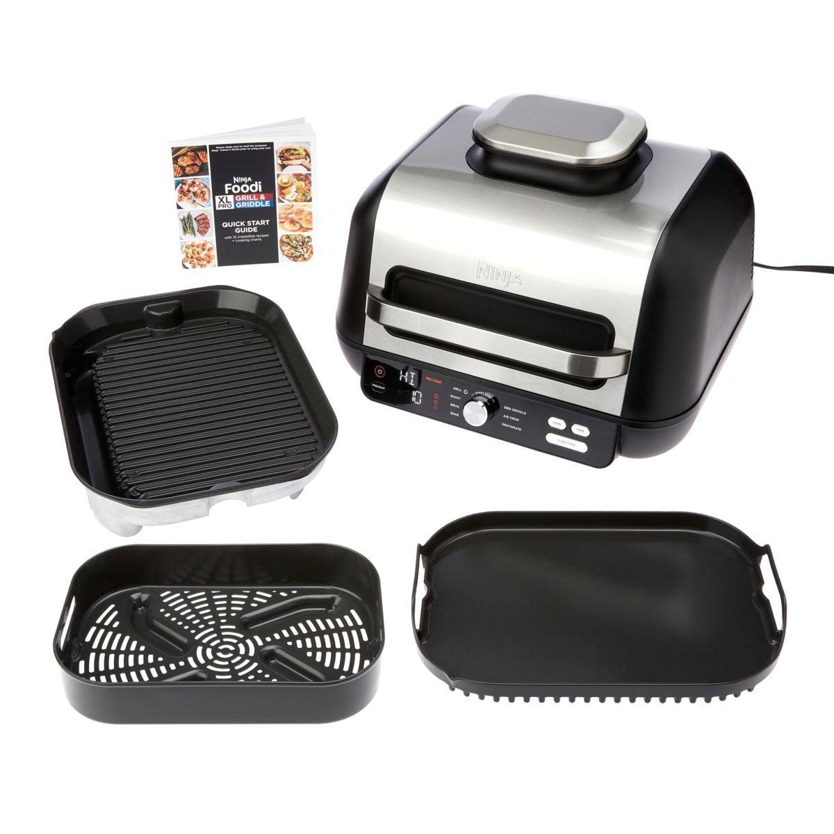 WHAT'S INCLUDED: Ninja Foodi Smart XL Griddle & Grill, 9" x 12" Grill Grate, 12" Flat Top BBQ Griddle, 4-qt. Crisper Basket & Quick Start Guide.