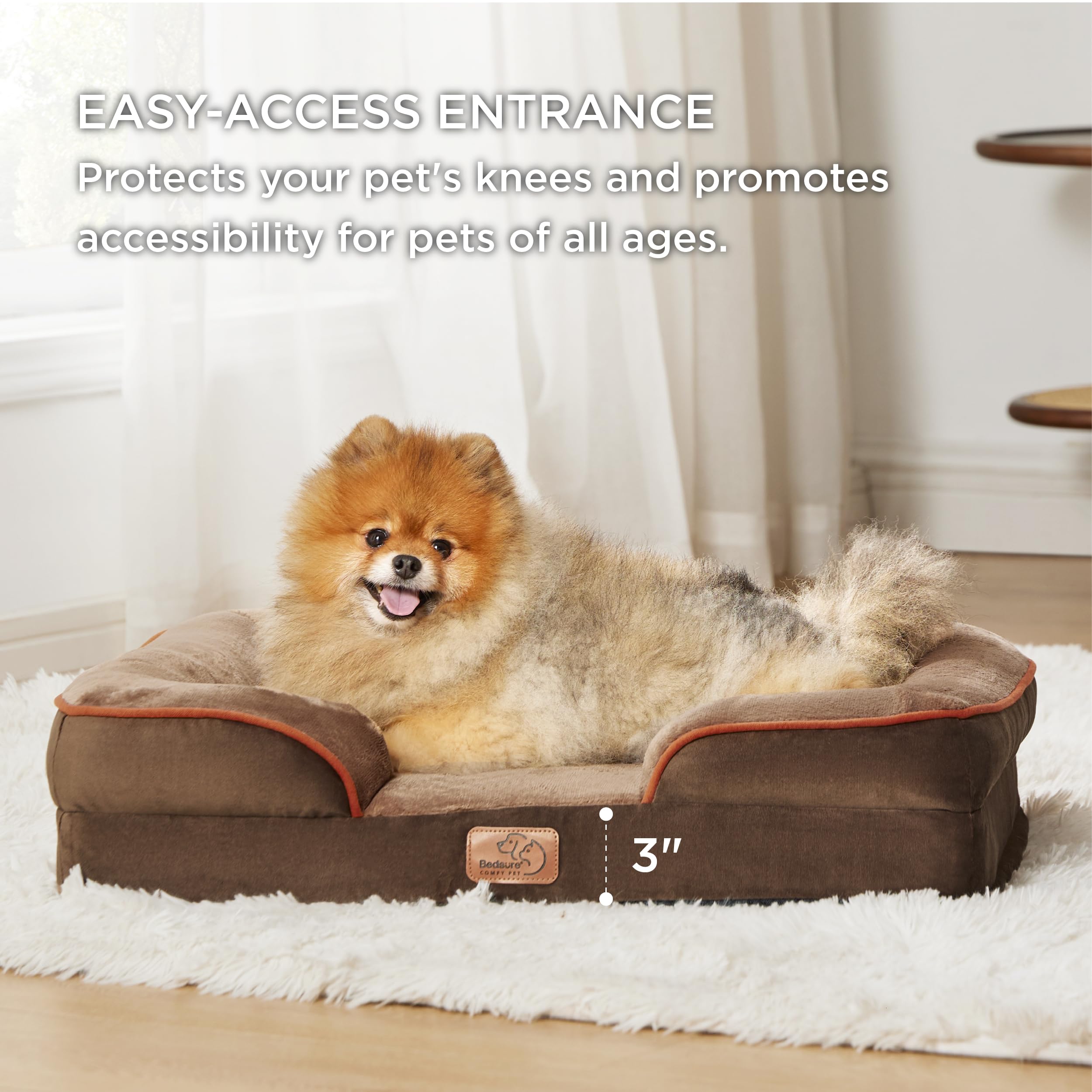 Enhanced Comfort: The 4-sided bolster design promotes ultimate comfort and security, offering your pet a variety of cozy positions to snuggle. The cushioned bolster shape is deeply filled to support your pet’s head and neck for a more restful sleep. And the lowered entrance protects your pet's knees and promotes accessibility.