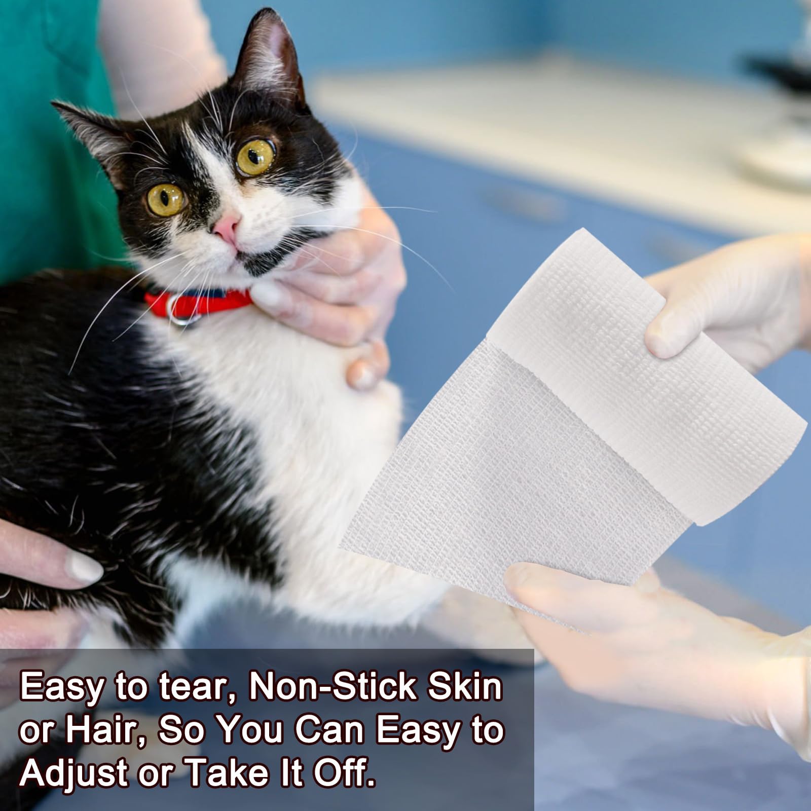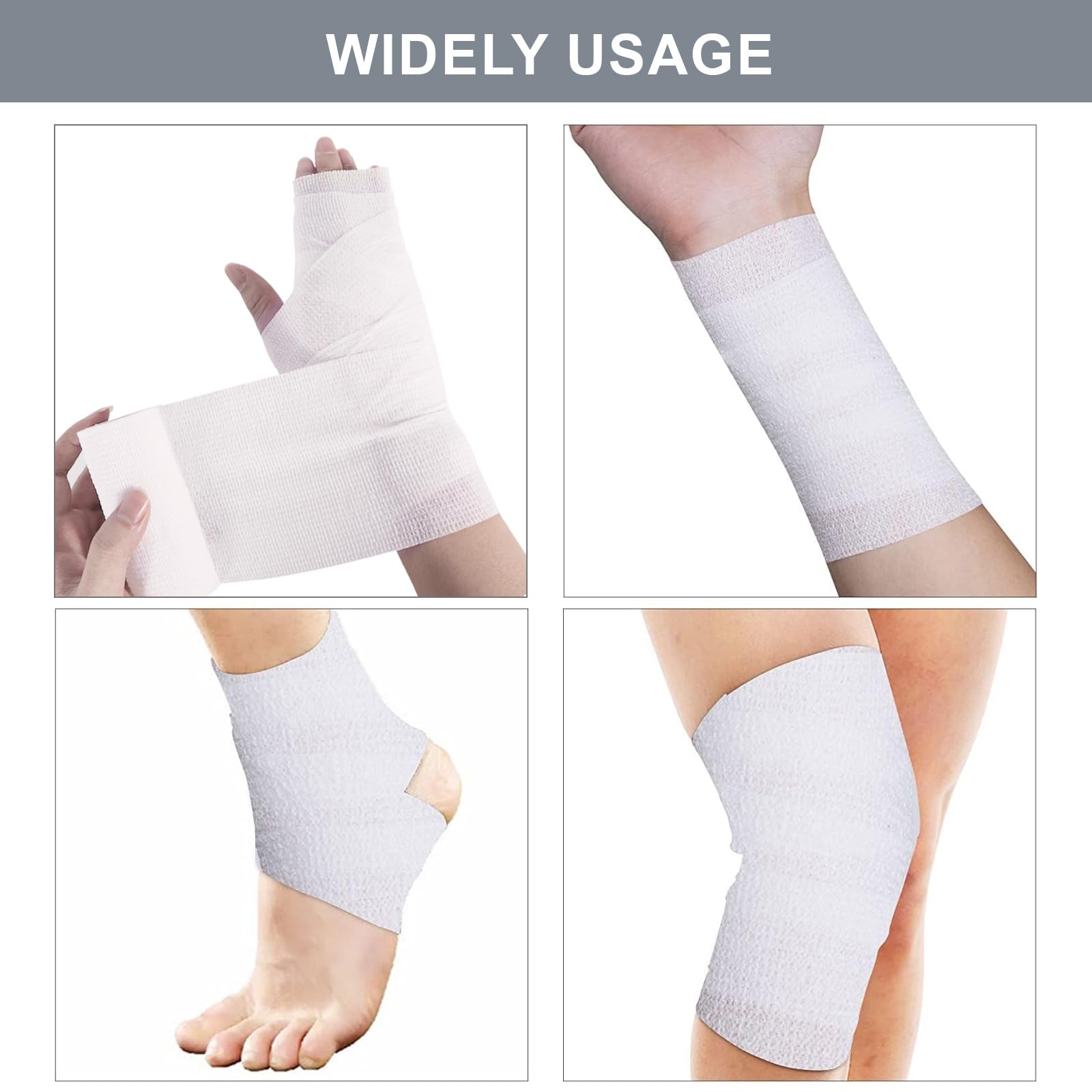 【No Residue & Effortless Application】Unlike ordinary tapes, this self-adhesive bandage sticks only to itself, not skin or hair. Easily tear b hand without scissors—perfect for quick fixes during sports, workouts, or pet emergencies. No pins or clips needed!v