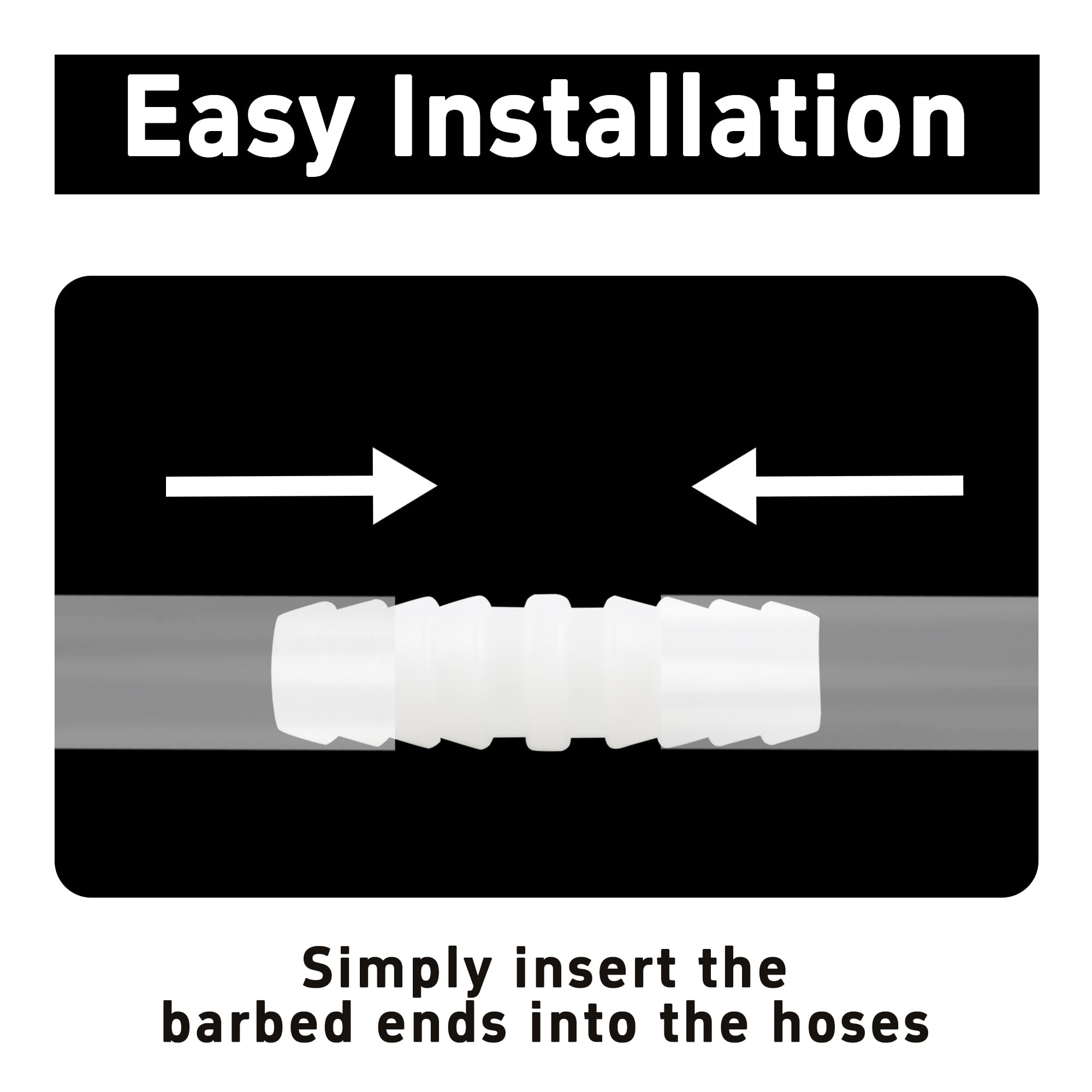Versatile 3/8" x 3/8" Size: With a 3/8-inch barbed fitting on both ends, these connectors are compatible with various 3/8" ID hoses, providing a universal solution for connecting, splicing, and repairing hoses in a wide range of applications.