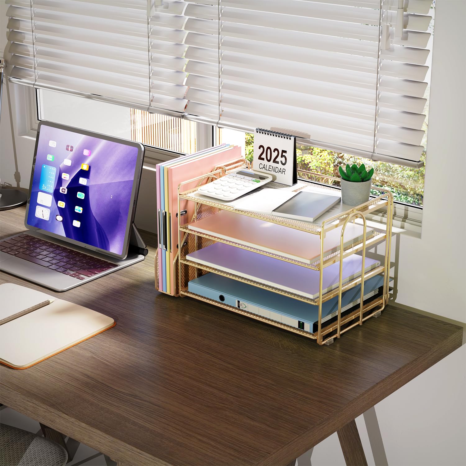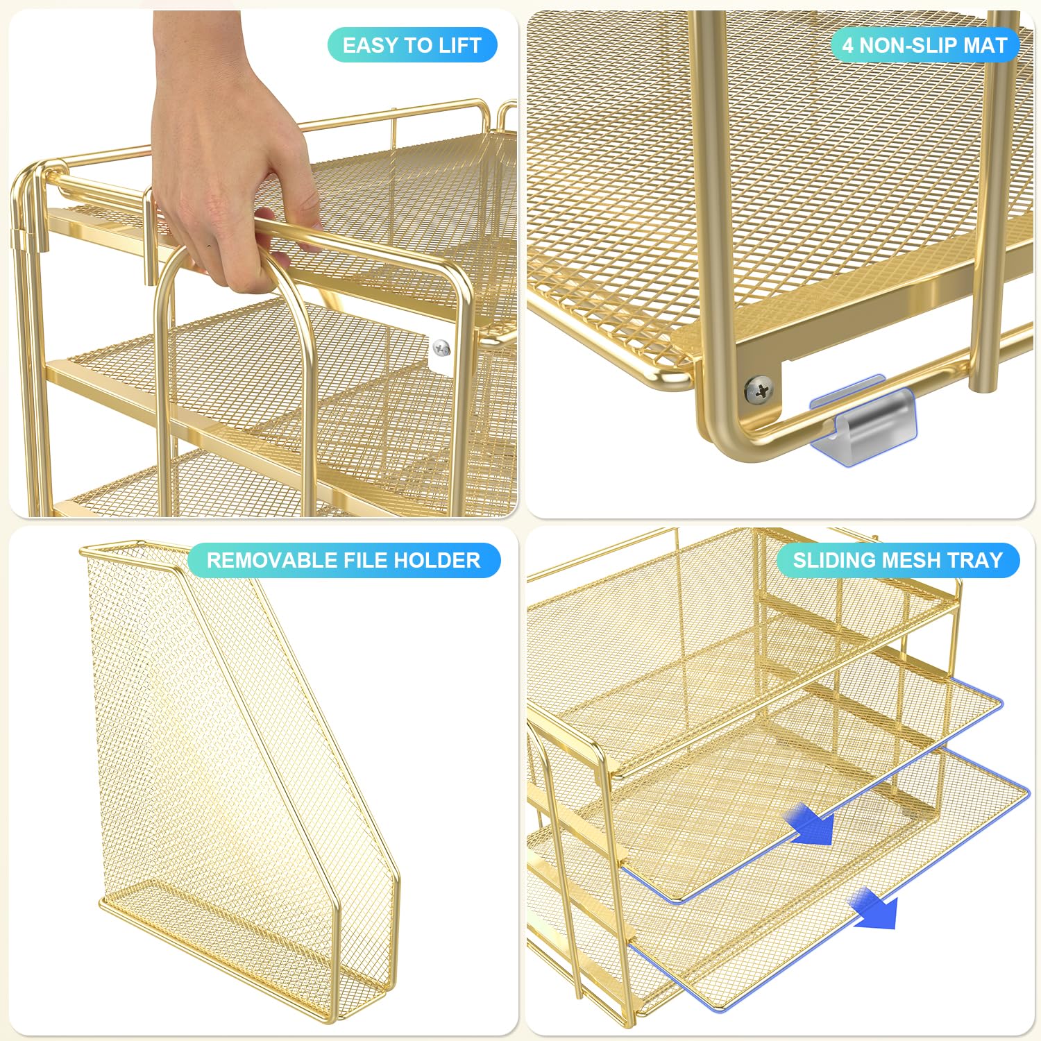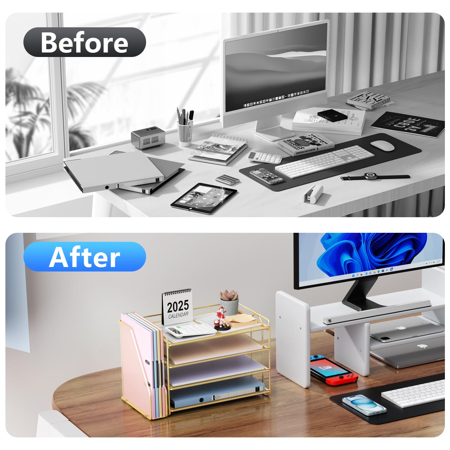 【Exceptional Stability & Durability】This heavy-duty metal file organizer features a reinforced structure capable of supporting up to 40 lbs without bending or collapsing. The anti-scratch rubber feet protect your desktop from marks and damage, ensuring your workspace stays pristine while keeping the organizer firmly in place.