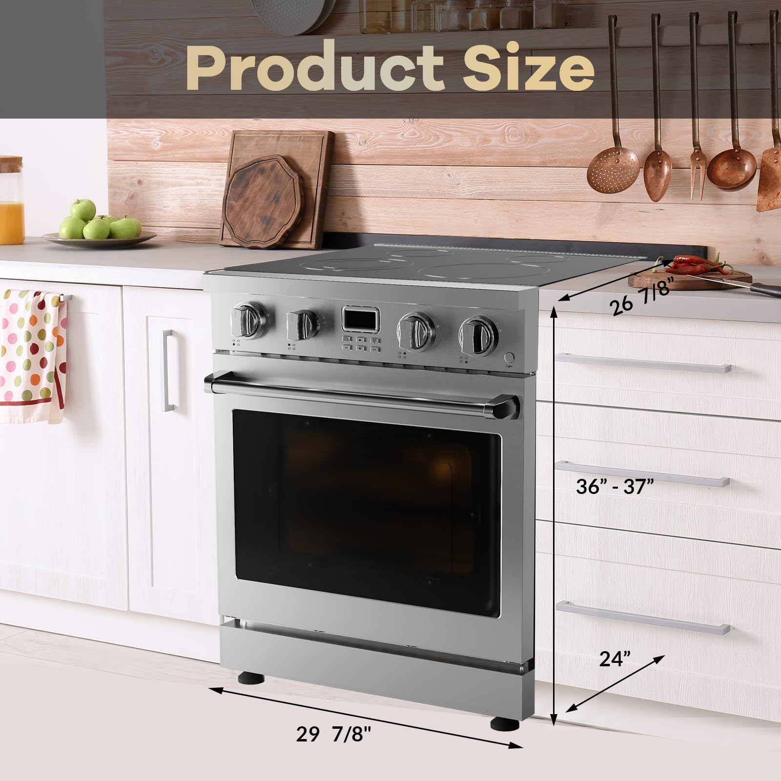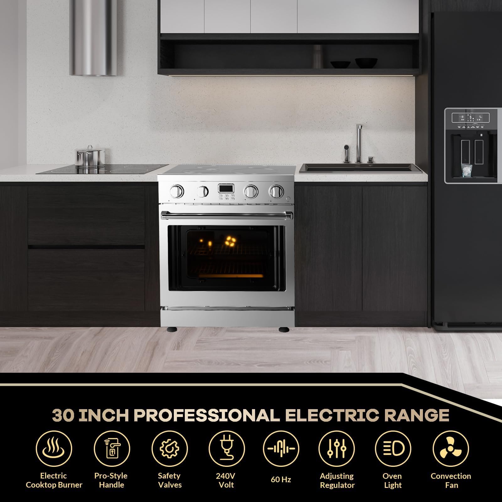 Versatile Cooking Power: This 30 inch electric range is designed as a four-burner induction cooking solution, serving as both a 30" electric range with 4 burners and an all electric freestanding range perfect for any modern kitchen setup.
