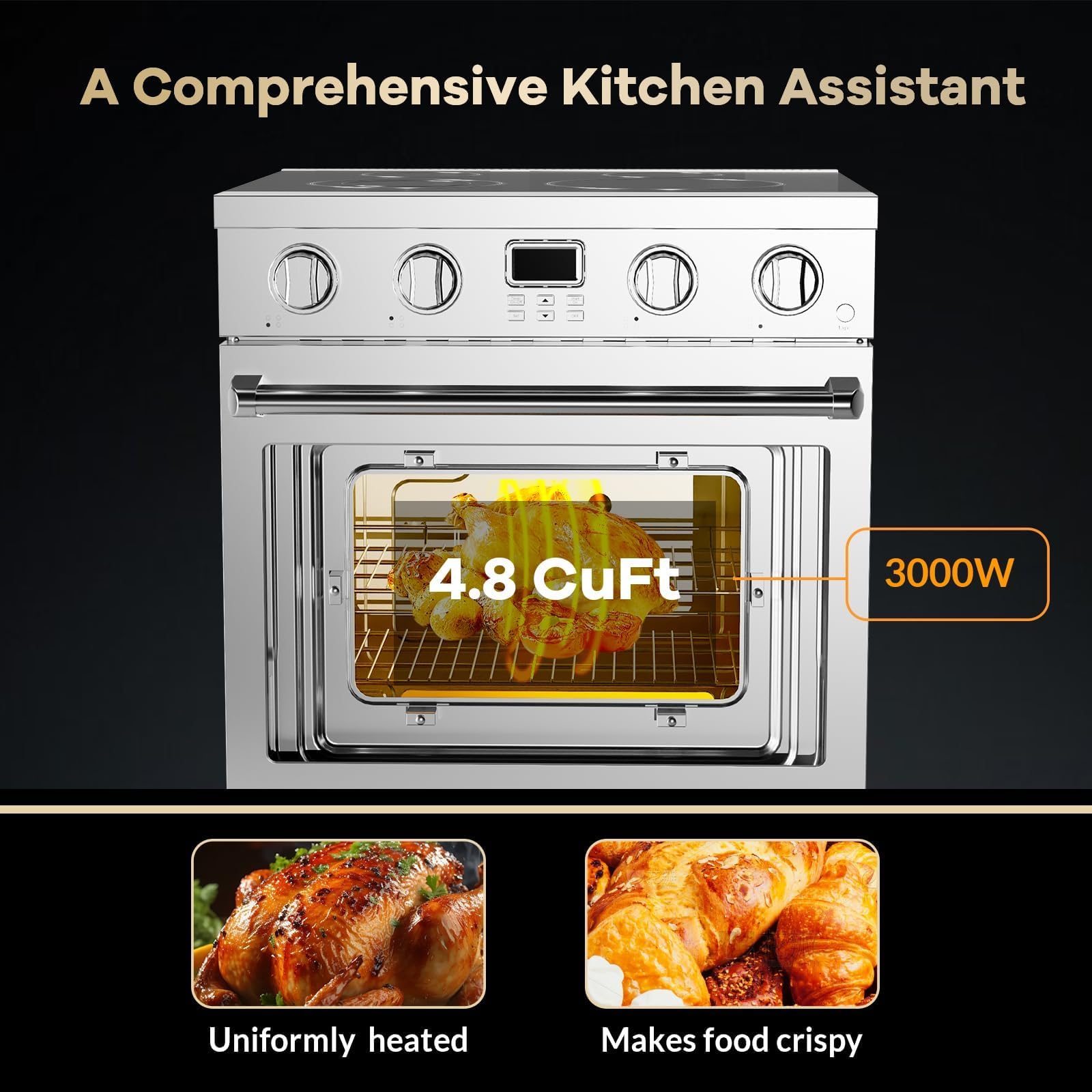 Consistent Convection Oven Performance: The 4.8 cu.ft convection oven in this 30 inch induction range ensures even heat distribution and reliable results, letting you cook multiple dishes at once, just like with high-quality electric wall ovens.