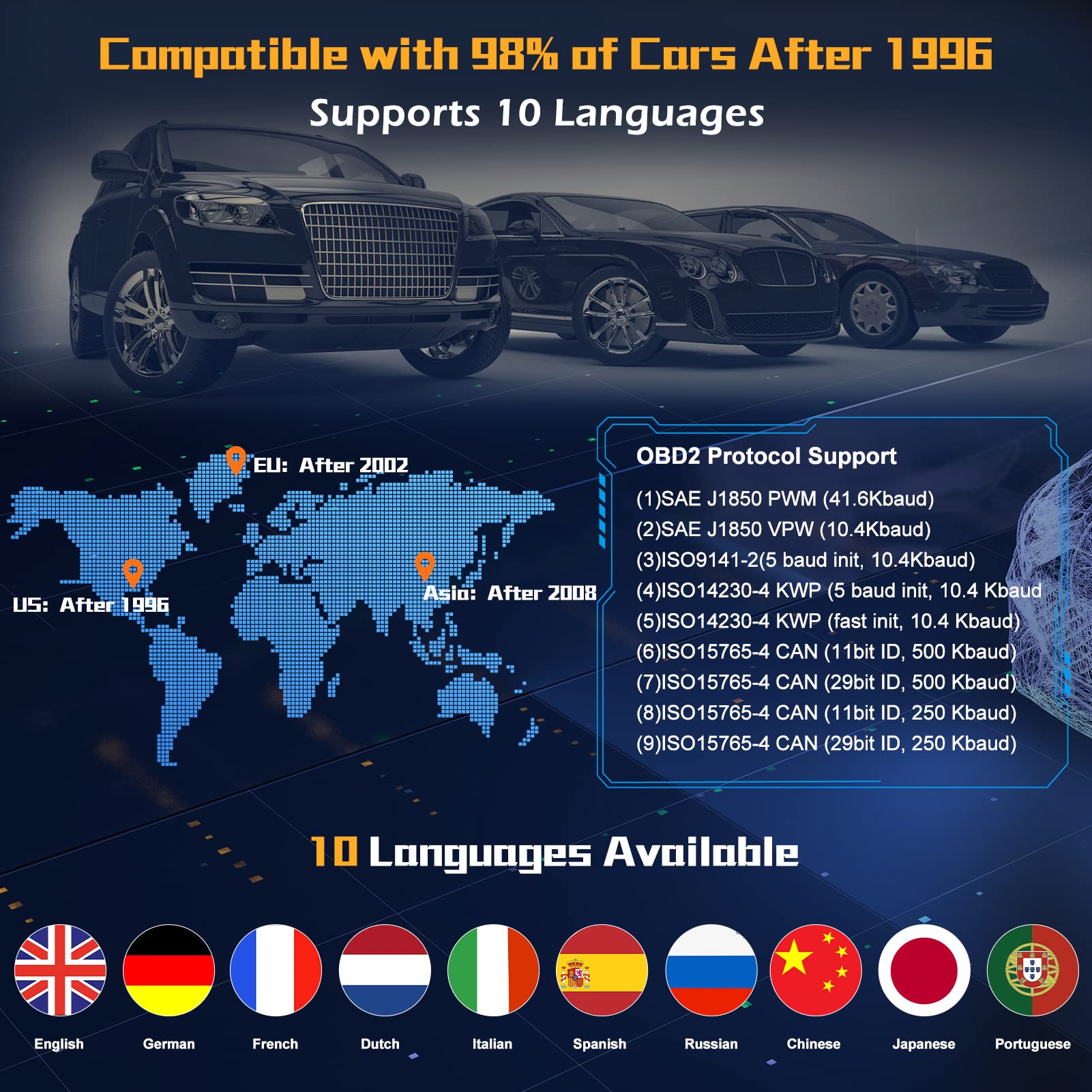 Compatible with 98% Vehicles: ZM201 OBD2 scanner for car is compatible with most cars after 1996(USA)/2002(EU)/2008(Asia). If your car has an OBD2 port (16Pin), and the production time meets the above timeline, then your vehicle is compatible. But it is not compatible with new energy vehicles, hybrid vehicles, and models that do not comply with the OBD2 protocol.