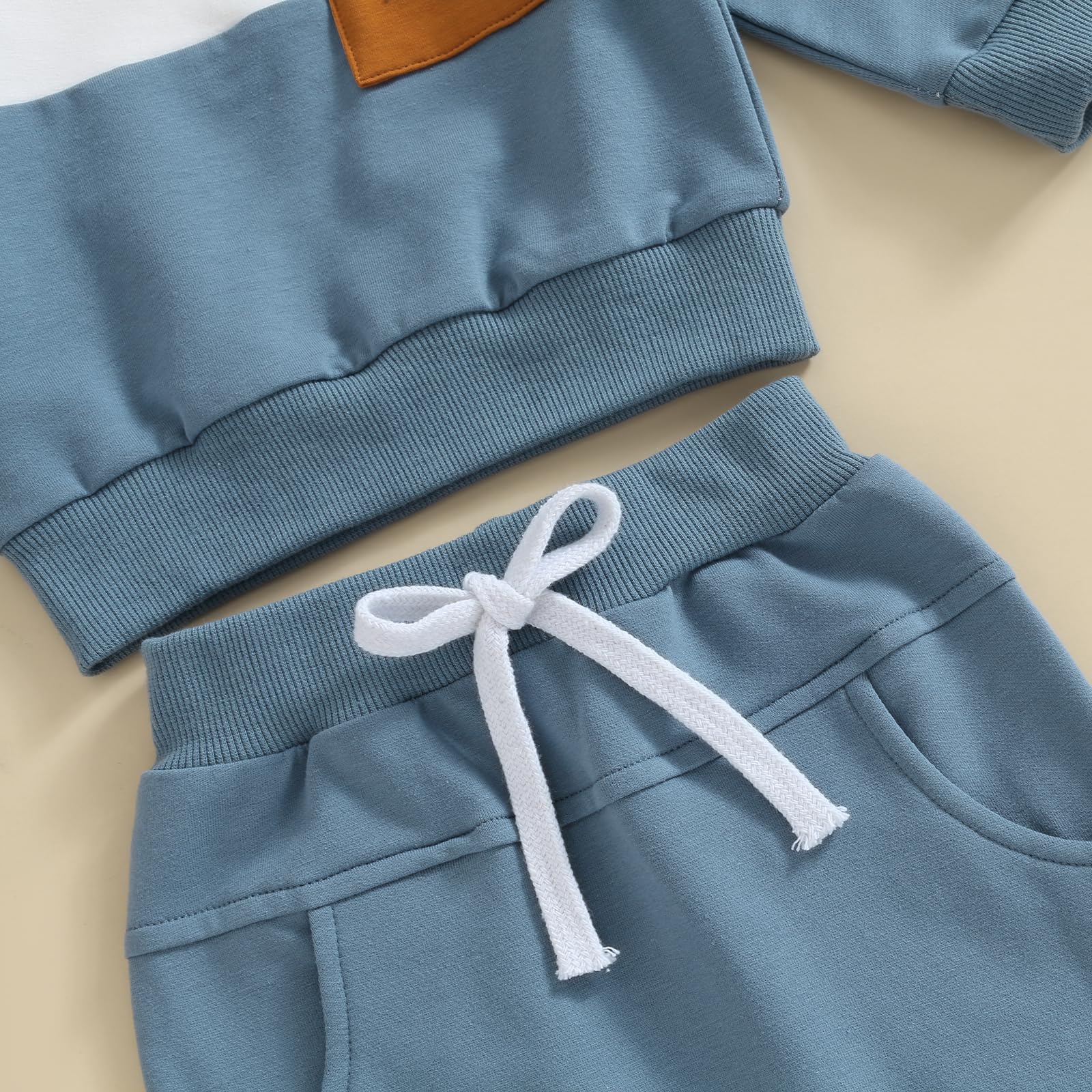 Design: Toddler boys casual 2pcs outfit sets, color block long sleeve crew neck pocket pullover sweatshirt jumper tops, drawstring casual long pants joggers, toddler baby boy sweatsuit, cute toddler boy fall clothes.