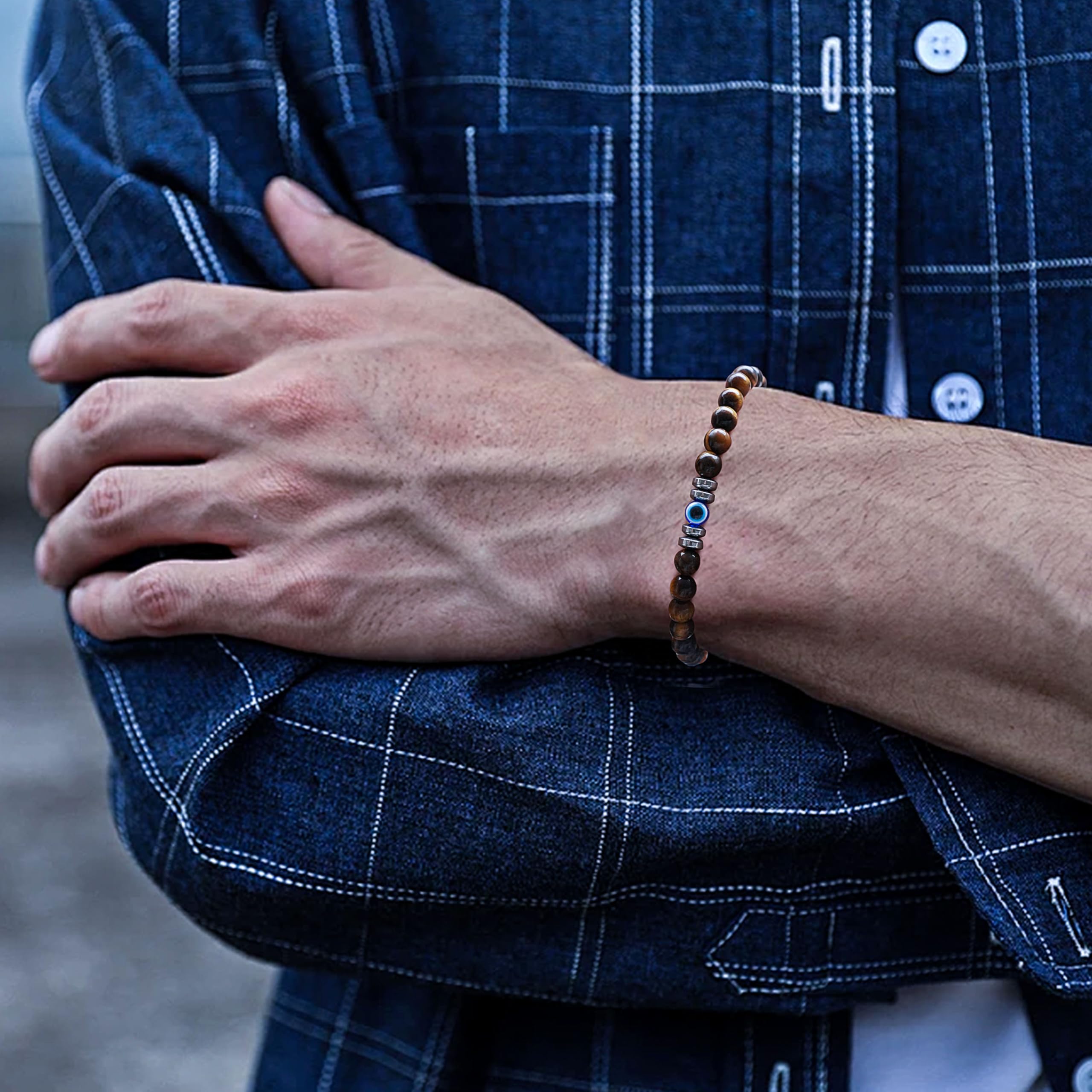 Good for daily: Elegant Evil Eye design, more choices for your daily wear. Different colors suitable for any occasion. Cute, business, leisure, simple&classic style bead bracelet set for men