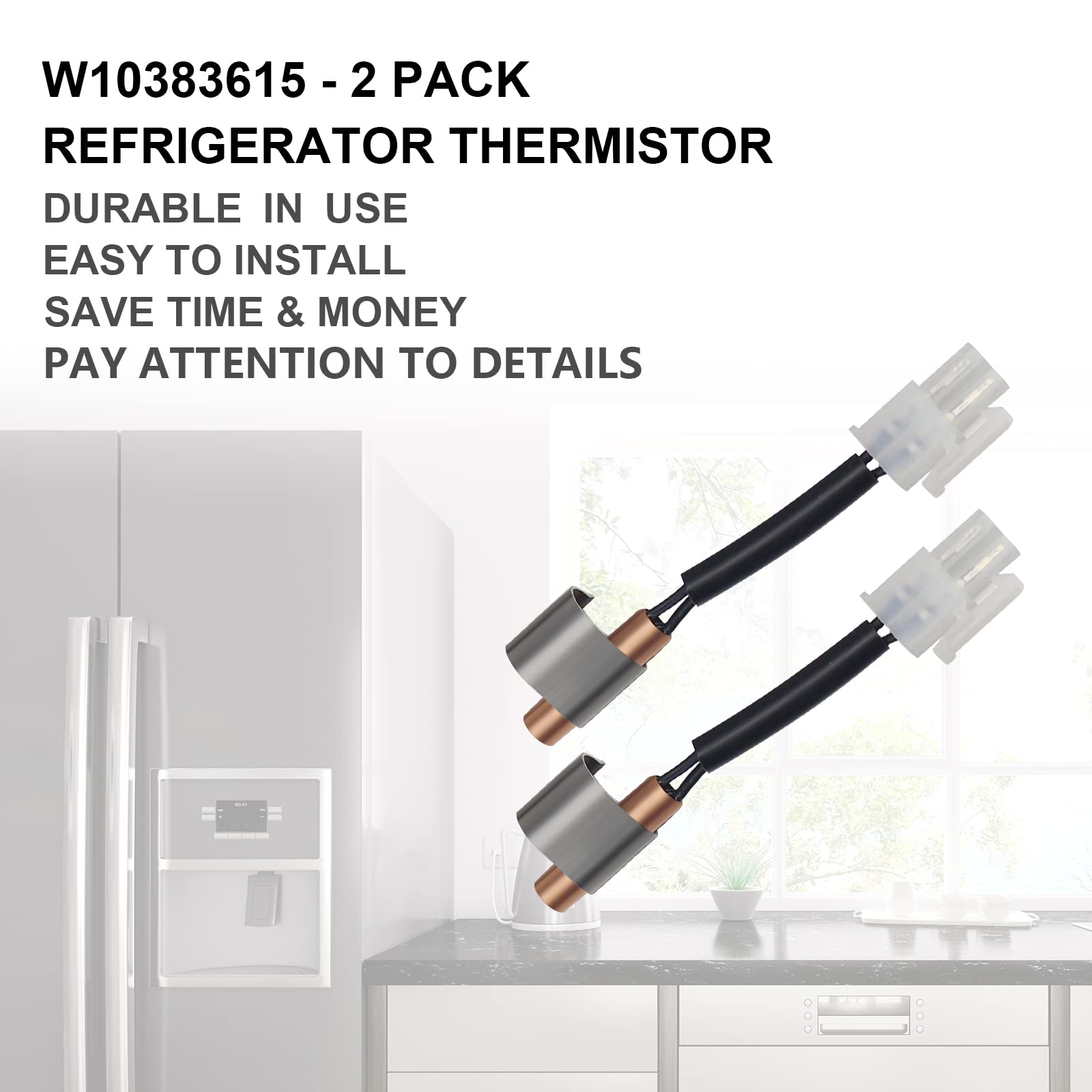 Replaces No.: The W10383615 Refrigerator Thermistor Replaces AP6020675, W10383615, WPW10383615, WPW10383615VP, 2118226, PS11753994, EAP11753994