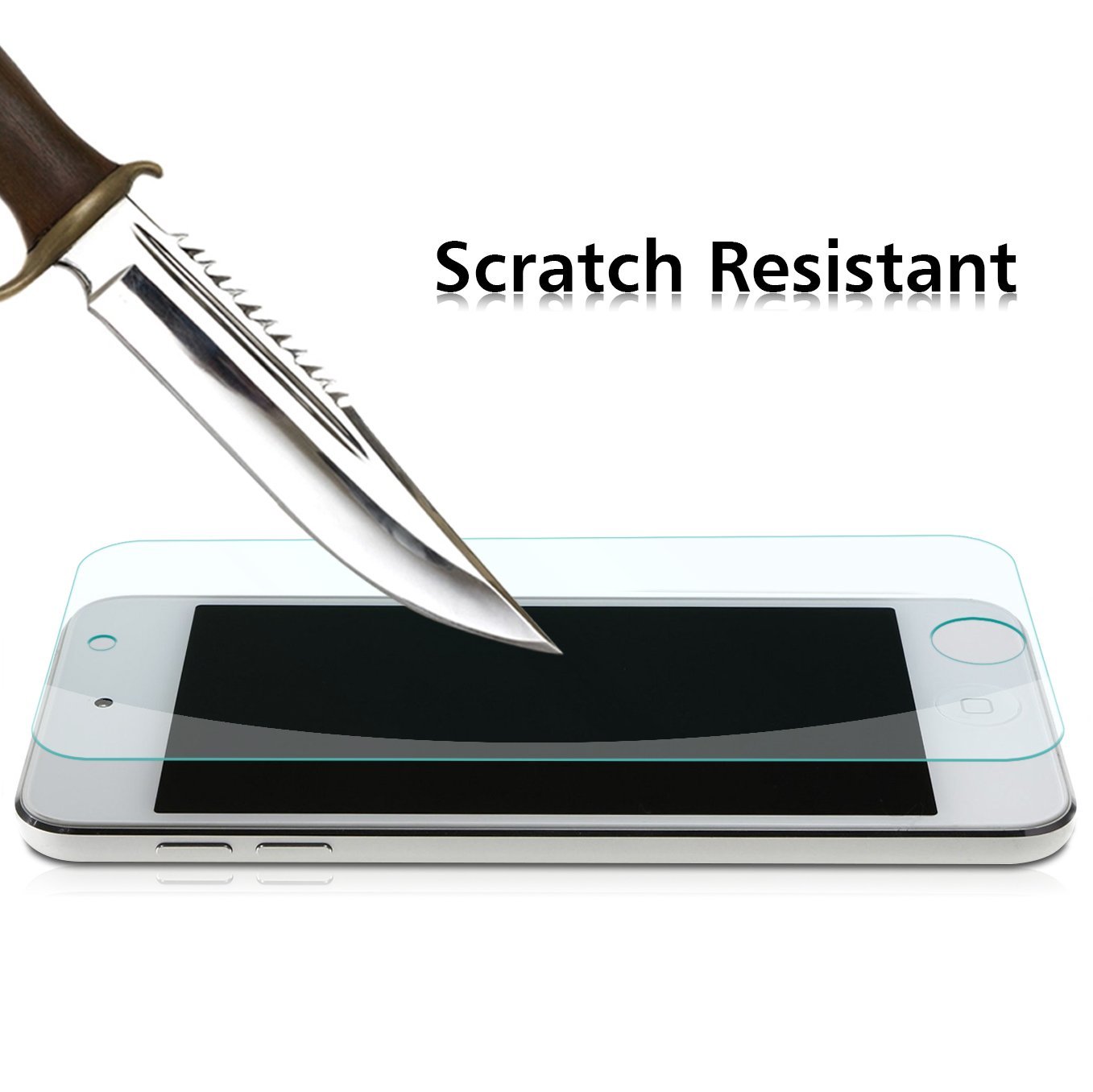 Scratch Resistant: This strong 9H hardness tempered glass screen protector can effectively protect your iPod Touch screen from unwanted scuffs and scratches by keys and some other hard substances.