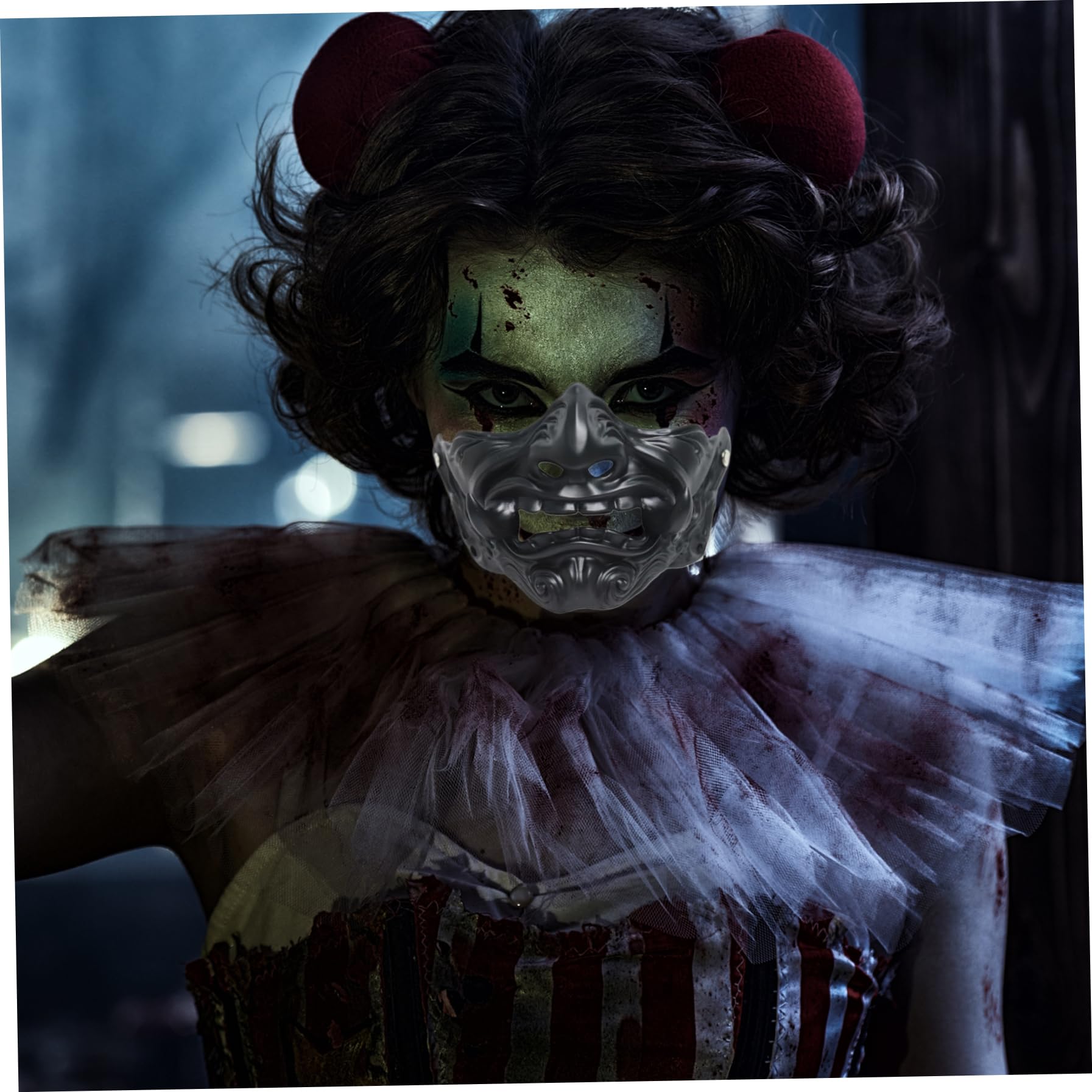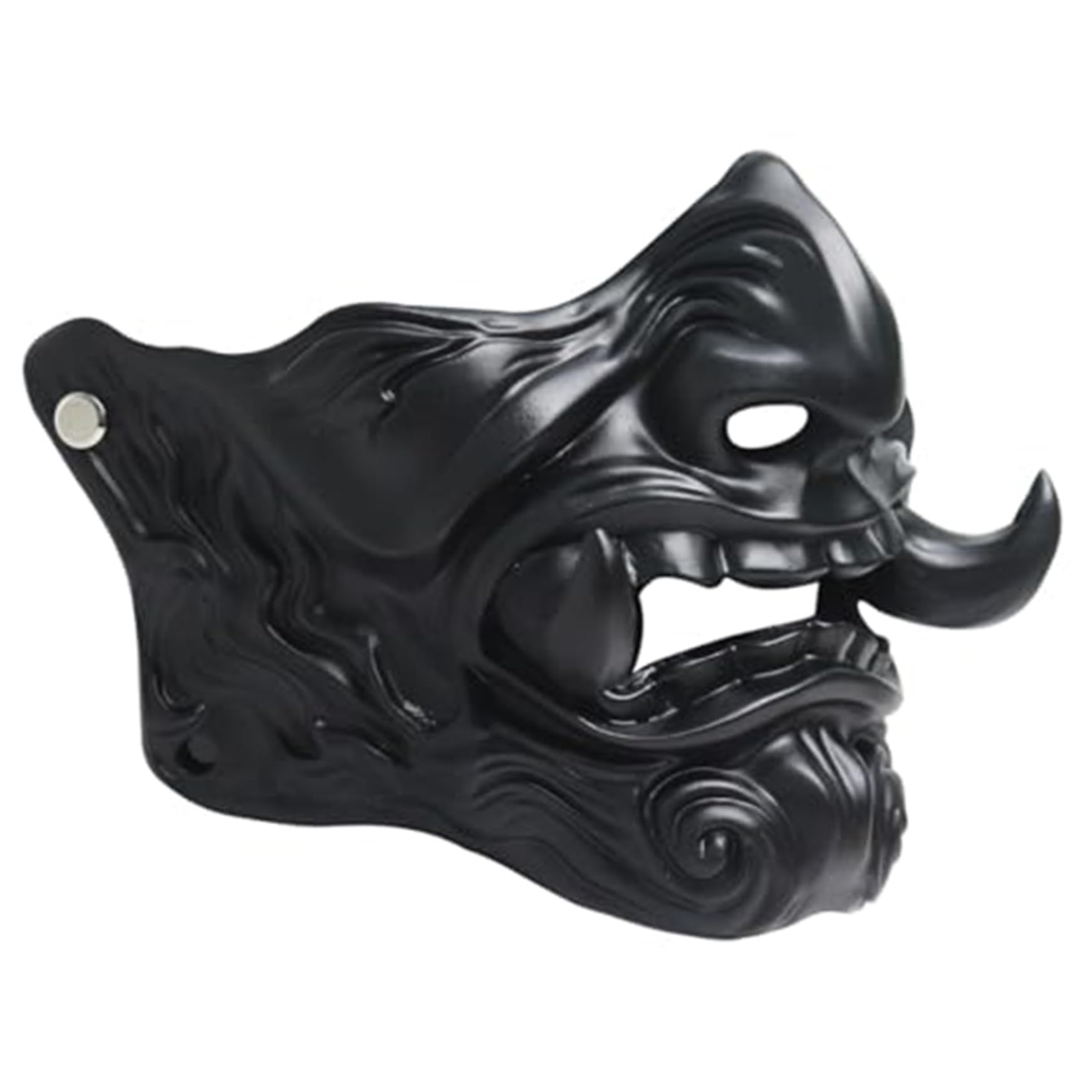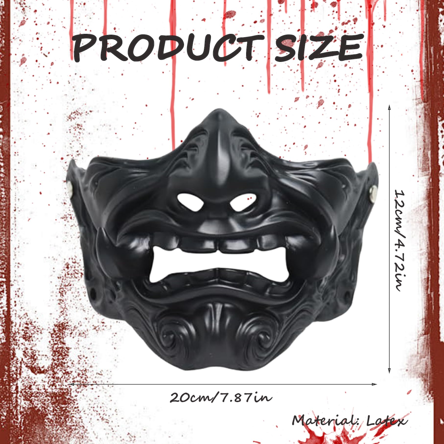 Perfect Fit: Equipped with an adjustable elastic band, this half-face samurai mask fits snugly and securely on various head sizes, making it ideal for adults and teens alike. Samurai Mask Hannya Mask