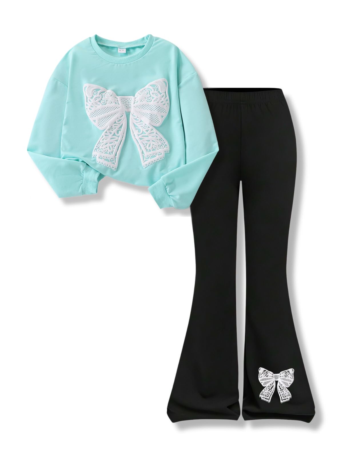 Unique Design: The cute solid colour sweatshirt with bow embellishment of this girls' suit is a more elegant and cute outfit, with flared trousers, which makes your child more elegant and beautiful in it