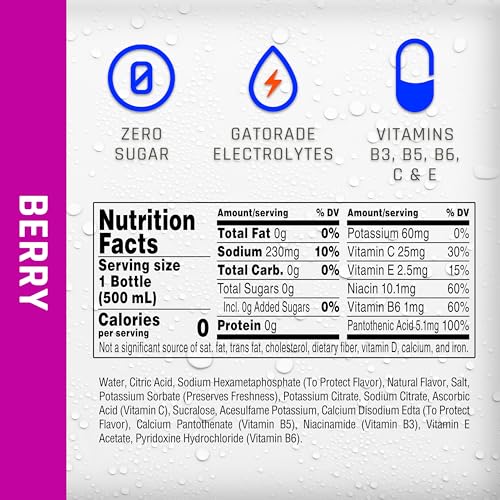 Includes 12 (16.9 fl oz) bottles of Propel Electrolyte Enhanced Water, Berry flavored water with Zero Calories, Zero Sugar, Electrolytes for Hydration, and Vitamins C & E