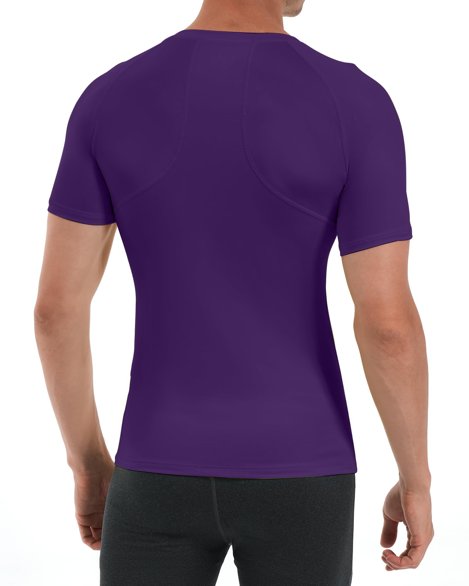 [Four-Way Stretch]: This men short sleeve compression shirt snugly conforms to your skin, providing stable support and helping to reduce muscle fatigue. Smooth flatlock seams and tagless design help minimize friction, ensuring a pleasant and comfortable experience during physical activities.