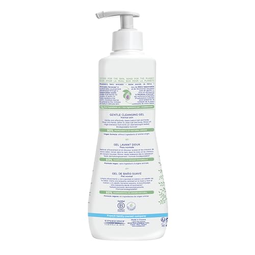 Product Description Mustela's best-selling Gentle Cleansing Gel safely and effectively cleans and soothes your baby's sensitive hair and skin. This biodegradable formula is fortified with Vitamin B5 and cleans thoroughly without stripping the skin and scalp of natural oils. Composed of 93% plant-based ingredients including Avocado Perseose, a patented natural ingredient to help protect and hydrate dry skin. Paraben, Phthalate and Phenoxyethanol free. Hypoallergenic and specially formulated to minimize the risk of allergic reactions. Tested under pediatric and dermatological control. Ingredients are Aqua/water/eau, Glycerin, Cocamidopropyl Betaine, Sodium Myreth Sulfate, Peg-7 Glyceryl Cocoate, Coco-glucoside, Peg-150 Distearate, Glyceryl Caprylate, Glycol Distearate, Parfum (Fragrance), Citric Acid, Panthenol, Potassium Sorbate, Persea Gratissima (Avocado) Fruit Extract. Brand Story Mustela, the skincare experts for babies and mothers-to-be for over 60 years.