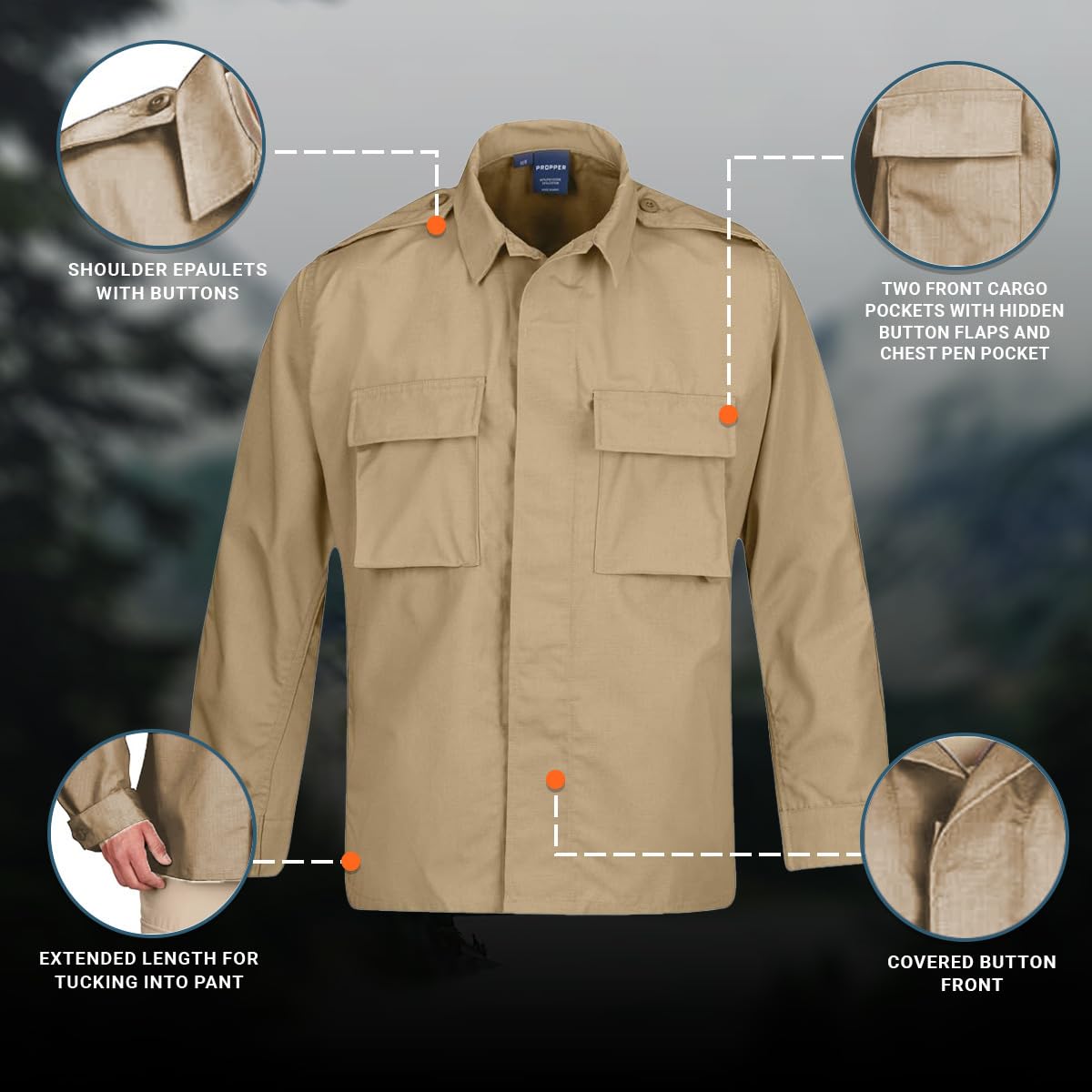 Fused pocket flaps and collar for clean, professional look.Fit type: Classic Fit.Sport type: Tactical & Military