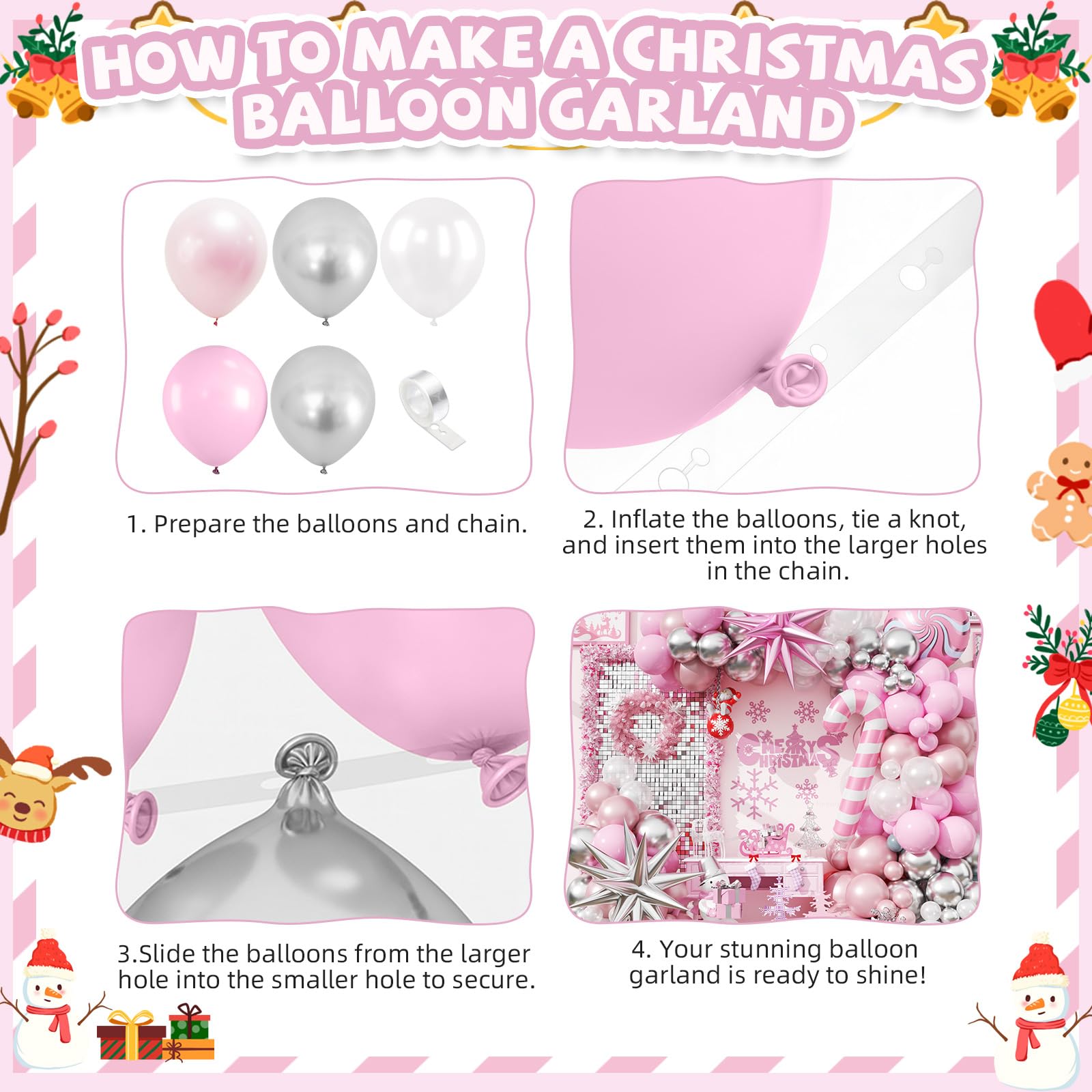 Designed for Celebrations: This pink Christmas balloon arch goes beyond simple decoration—it creates a holiday atmosphere full of joy and wonder. Whether you are preparing for a Christmas carnival, family dinner, or office holiday celebration, this versatile set makes every space more festive and full of charm.